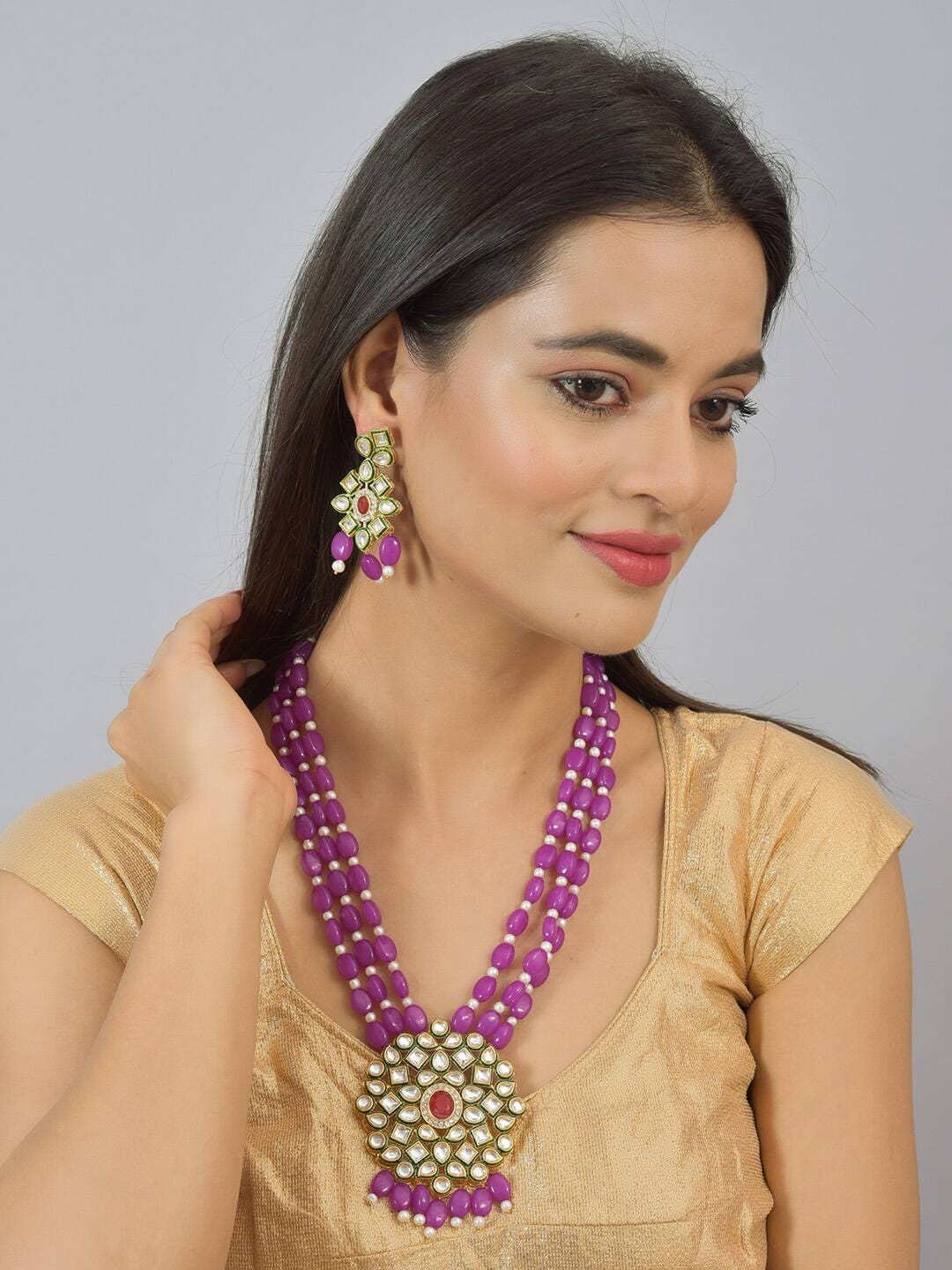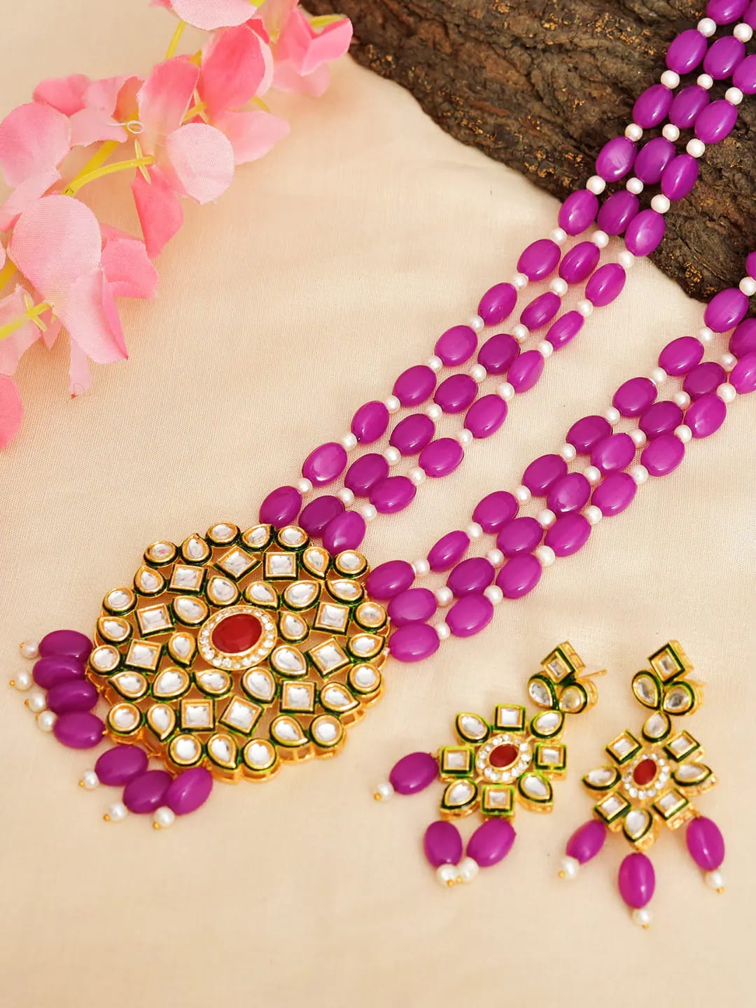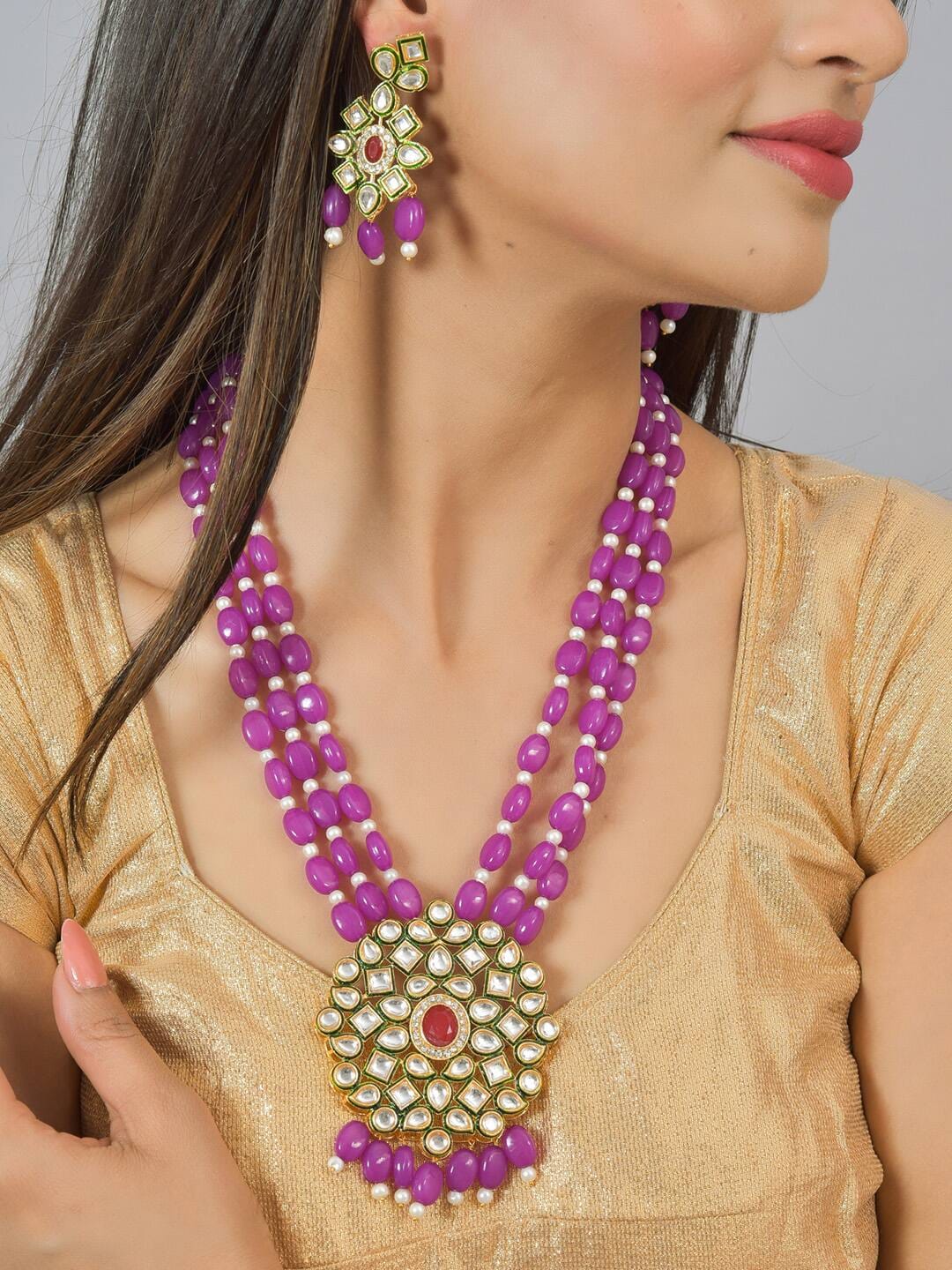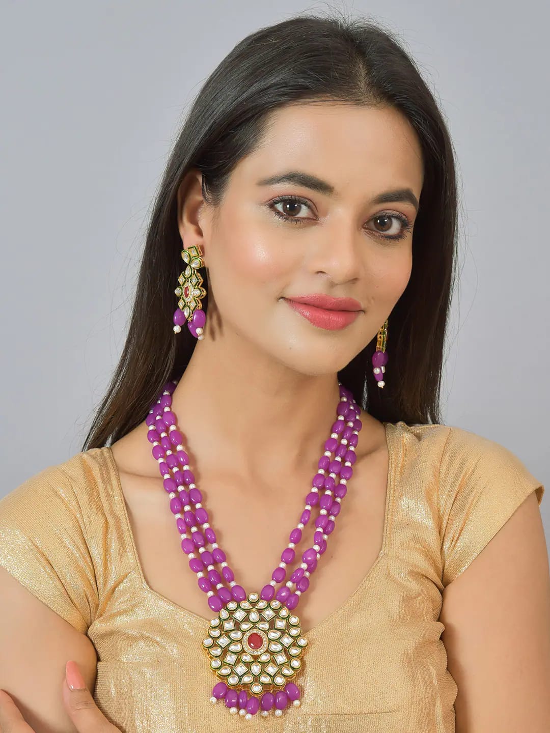 Gold-Plated Kundan-Studded & Beaded Nacklace