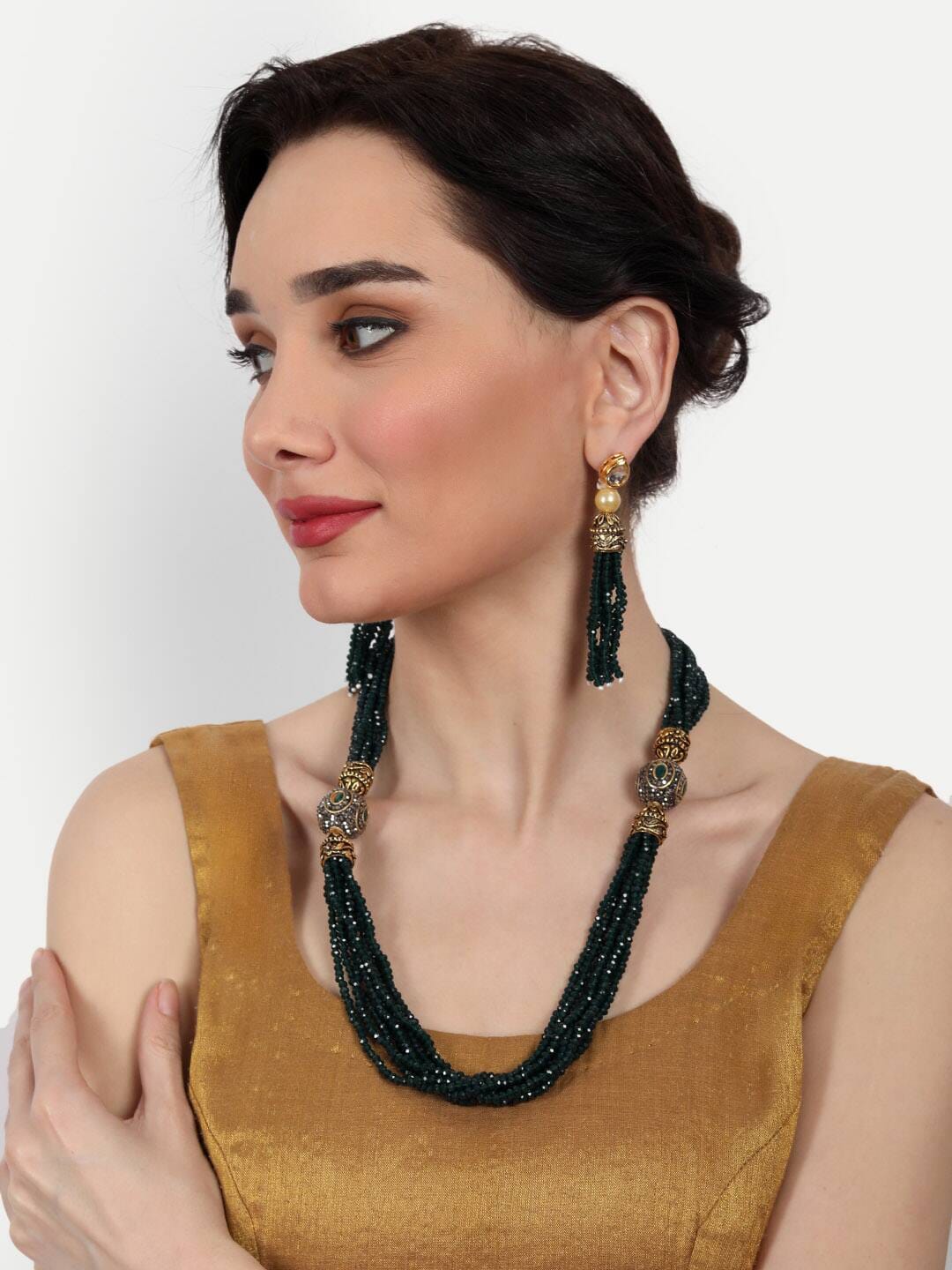 Gold-Plated Sparkling Jaipuri Beads Necklace