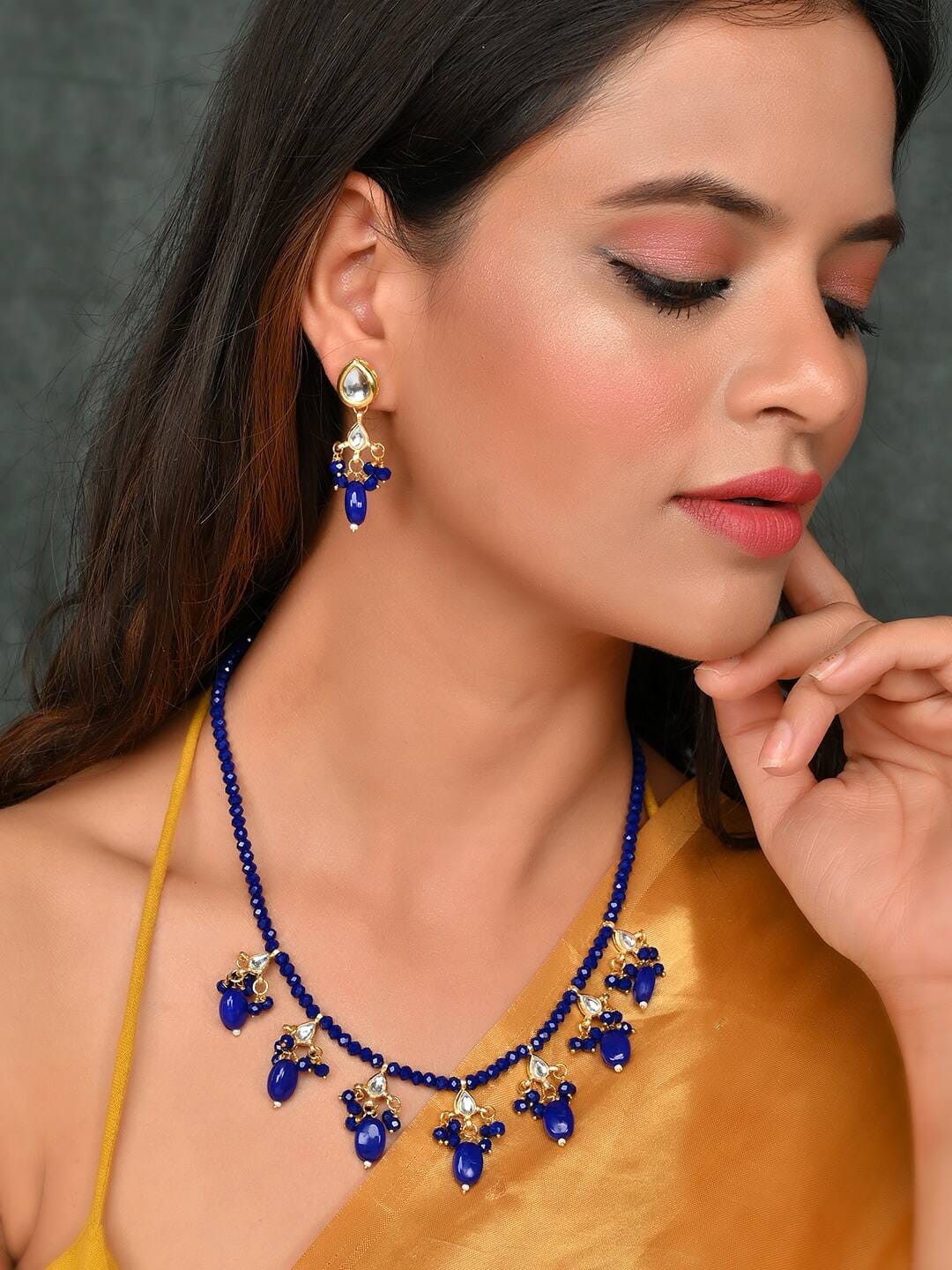 Victorian Uncut Polki Faux Diamond Necklace & Earring Set
