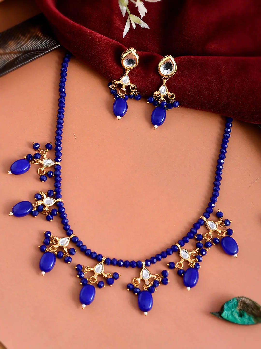 Gold Plated Pearl Studded Choker Necklace & Earrings Set