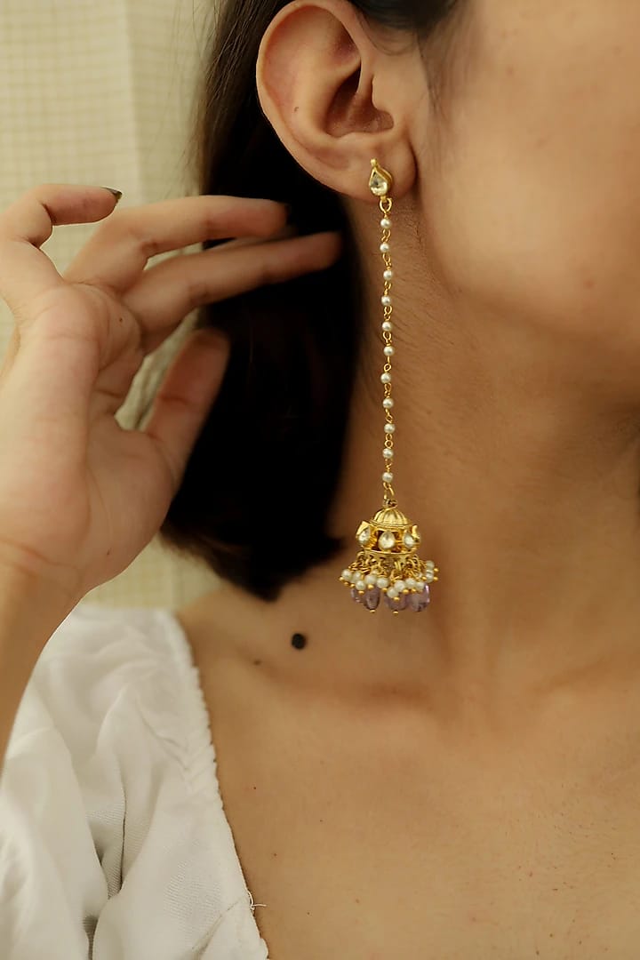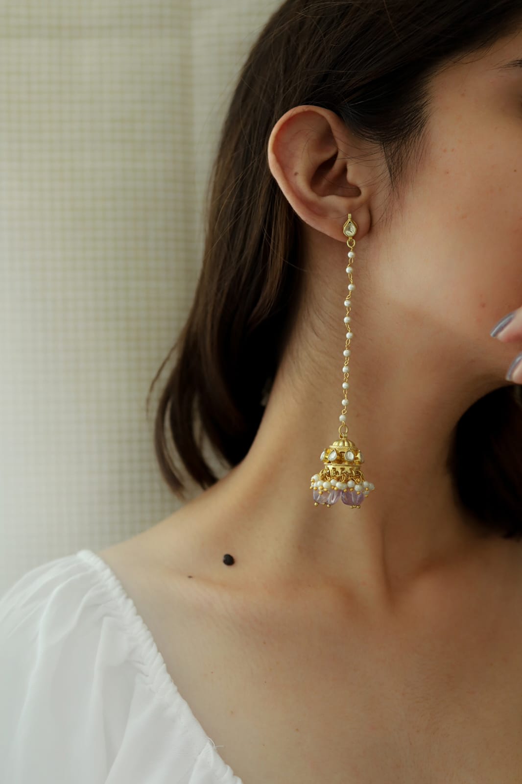 Be the first to review “Gold Plated Amethyst Stone & Pearl Jhumka Earrings”