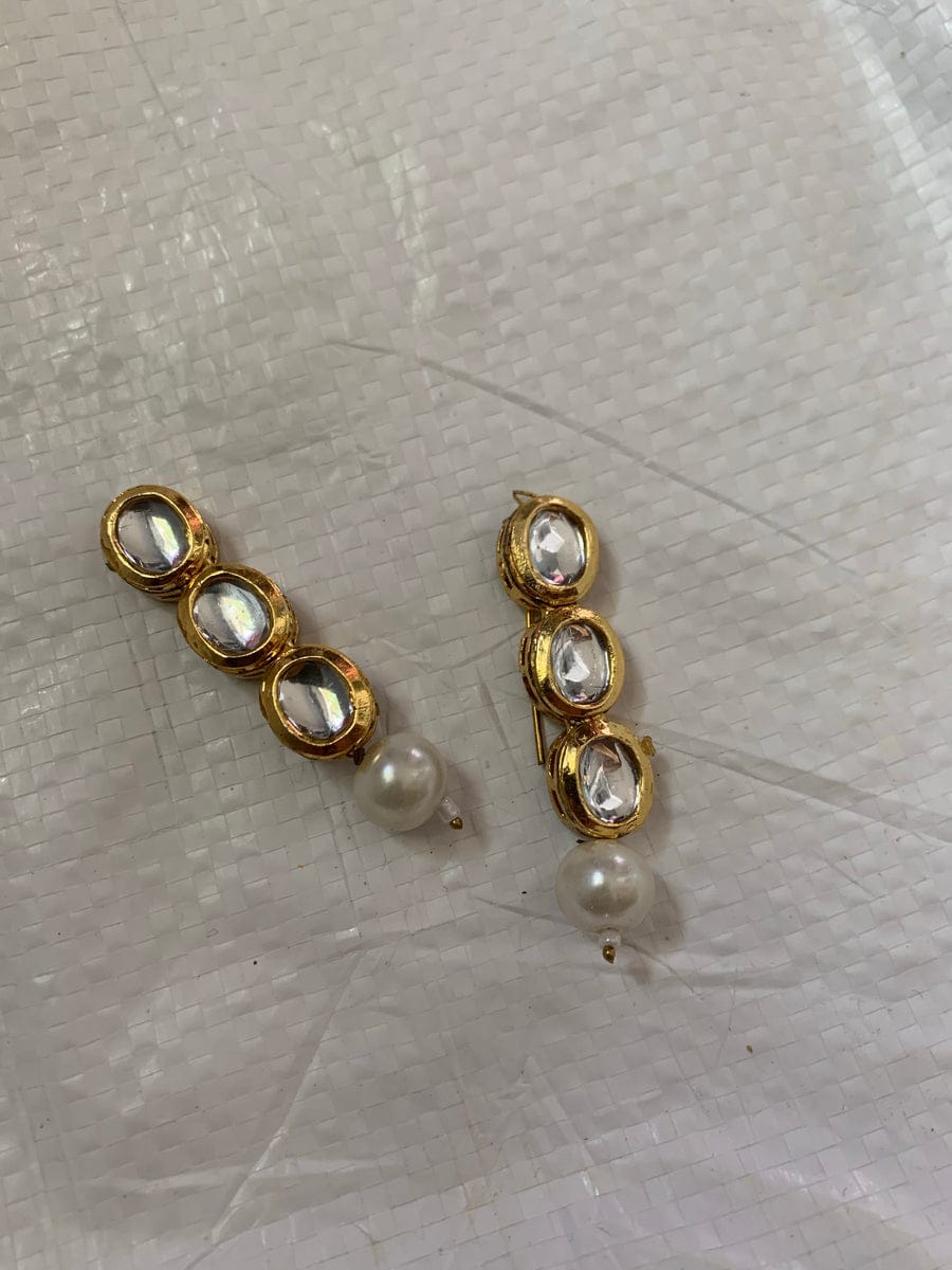 Designer Pearl Beaded Kundan Choker Necklace With Earrings