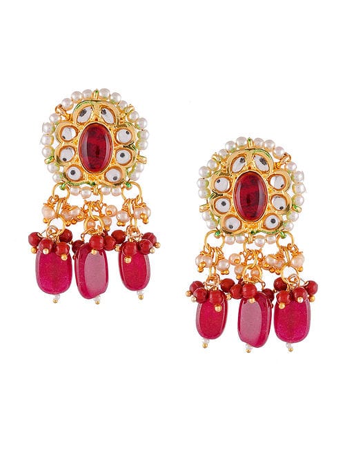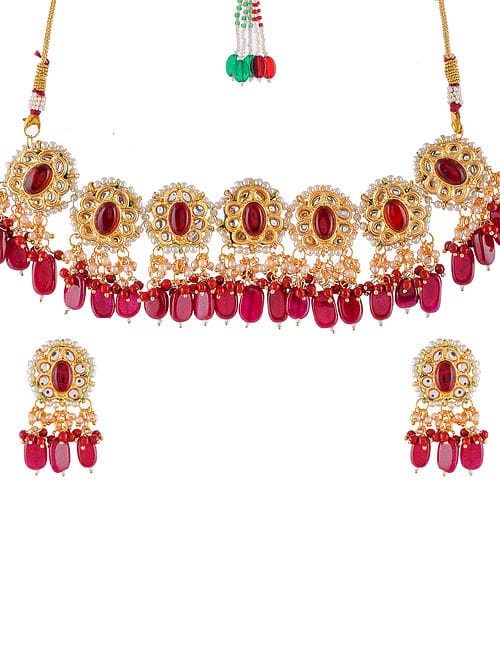Gold Plated Stones Studded & Beaded Jewellery Set