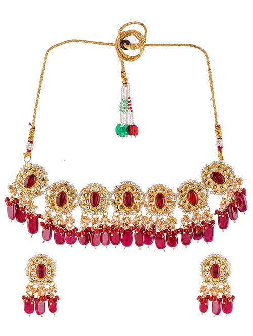Gold-Plated Kundan-Studded & Beaded Nacklace