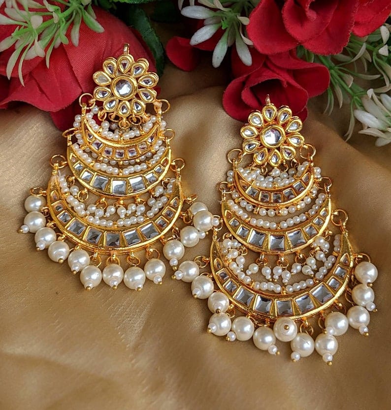 Gold-Plated Kundan-Studded Contemporary Chandbali Earrings