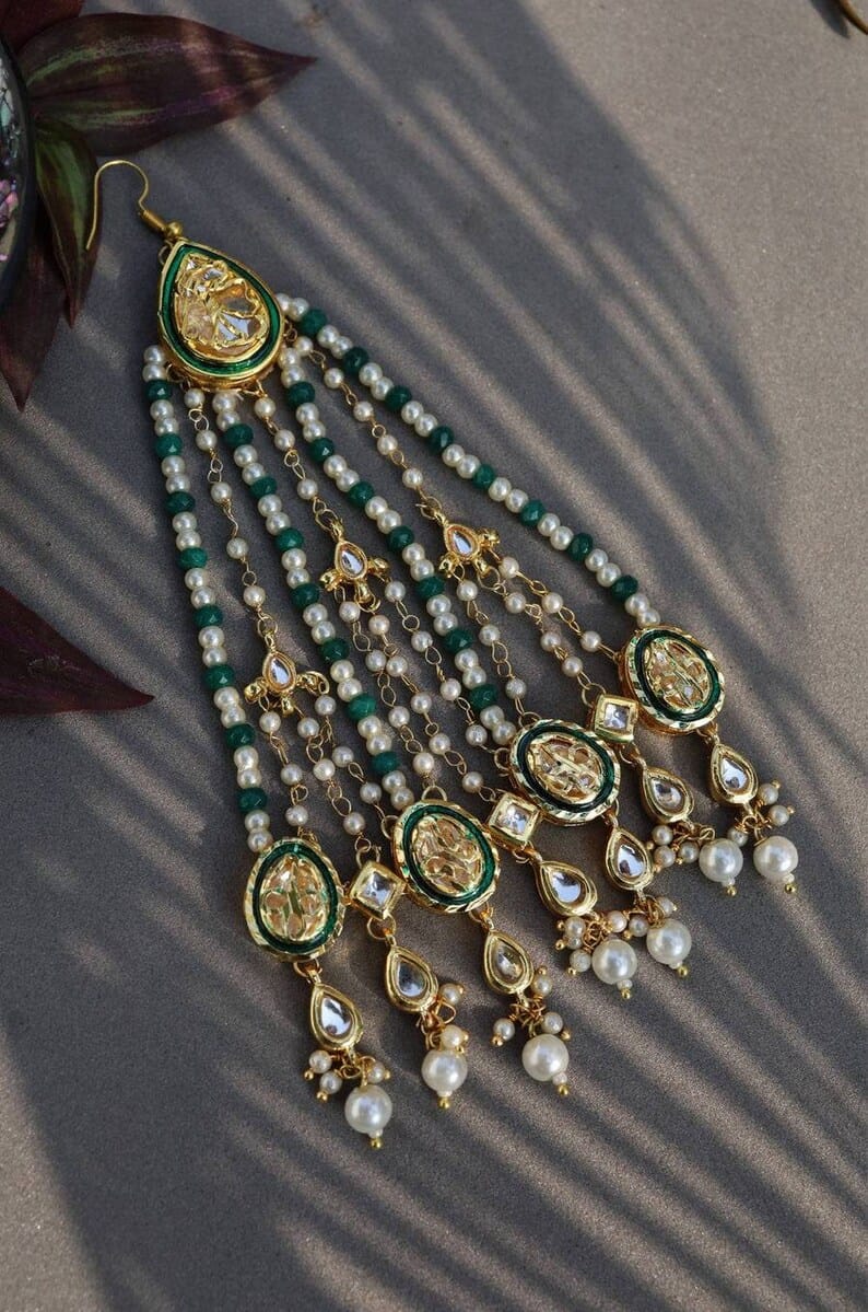 Gold Plated Green Emerald Kundan Passa Bridal Jhoomar Jewellery