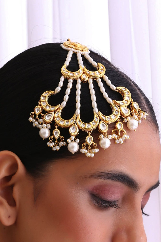 Gold Plated Green Emerald Kundan Passa Bridal Jhoomar Jewellery