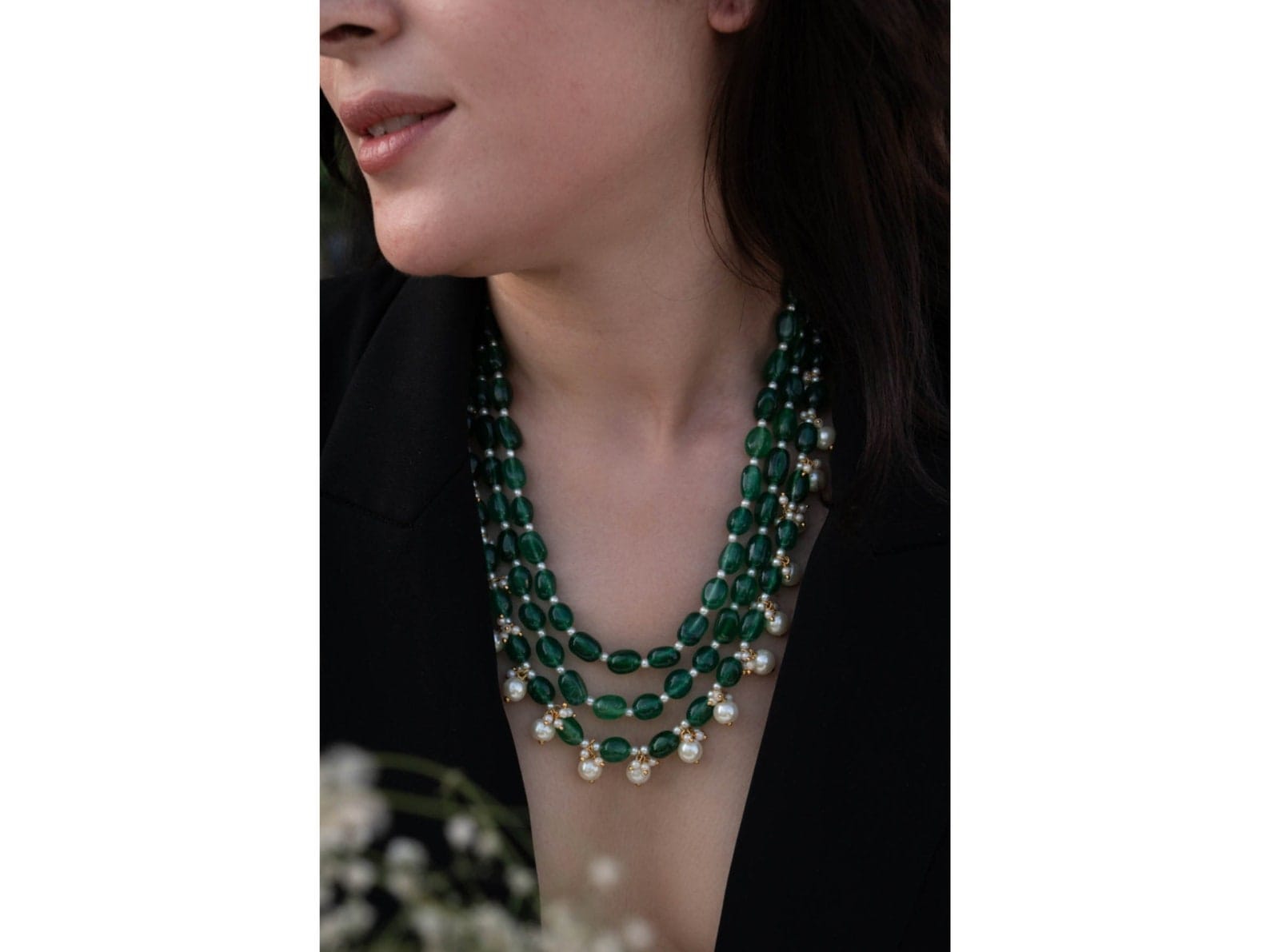 Be the first to review “Green Fresh Water Pearls Stones Embellished Multi Layered Necklace” Cancel reply
