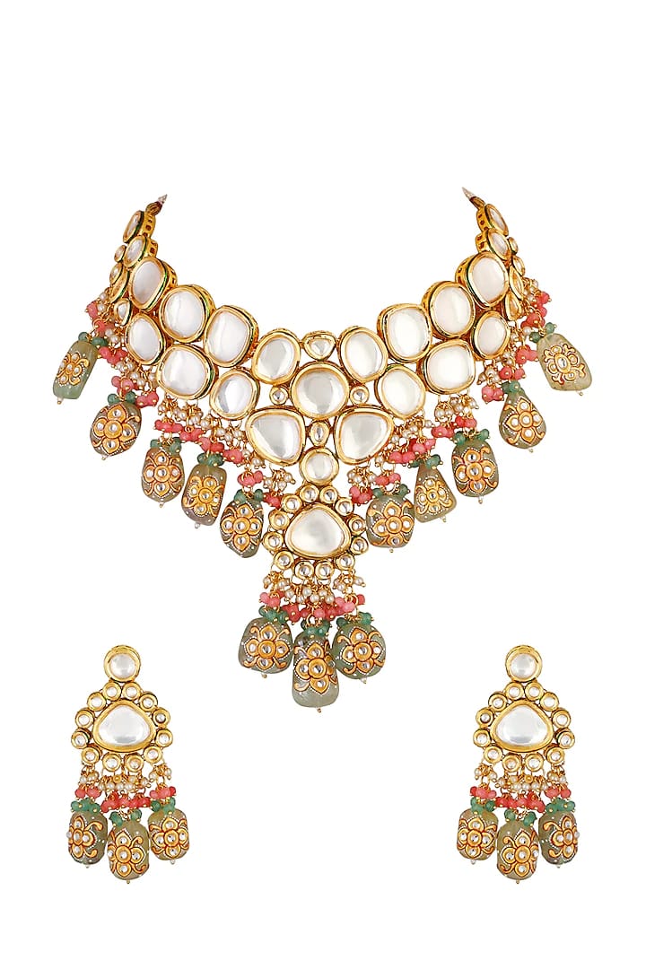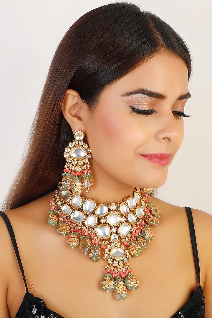 Designer Pearl Beaded Kundan Choker Necklace With Earrings