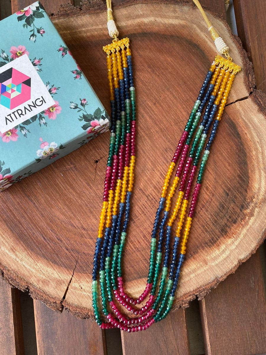 Green Fresh Water Pearls Stones Embellished Multi Layered Necklace