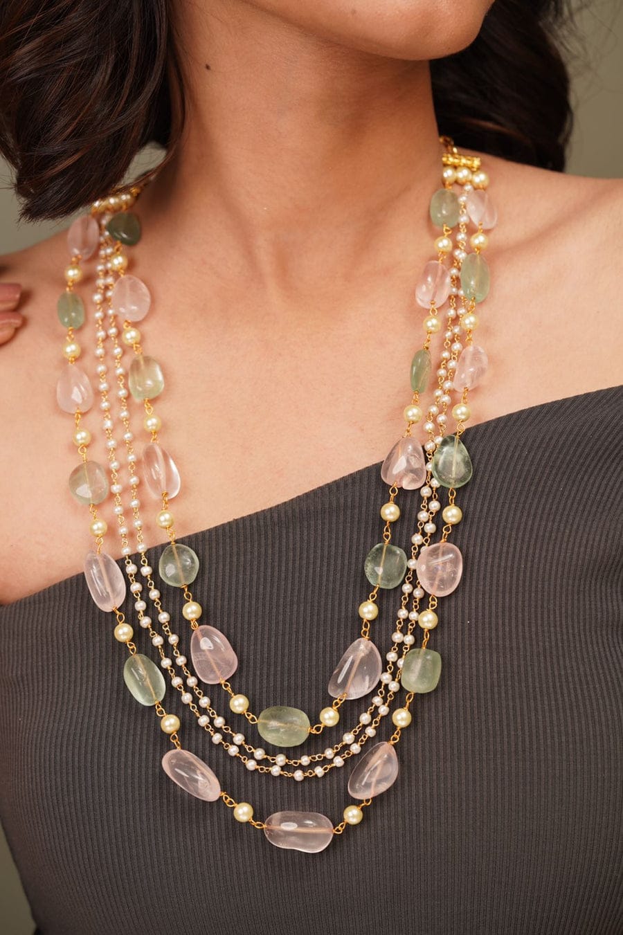 Gold-Plated Sparkling Jaipuri Beads Necklace