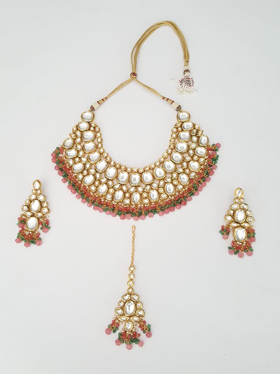 Gold-Plated Kundan-Studded & Beaded Nacklace