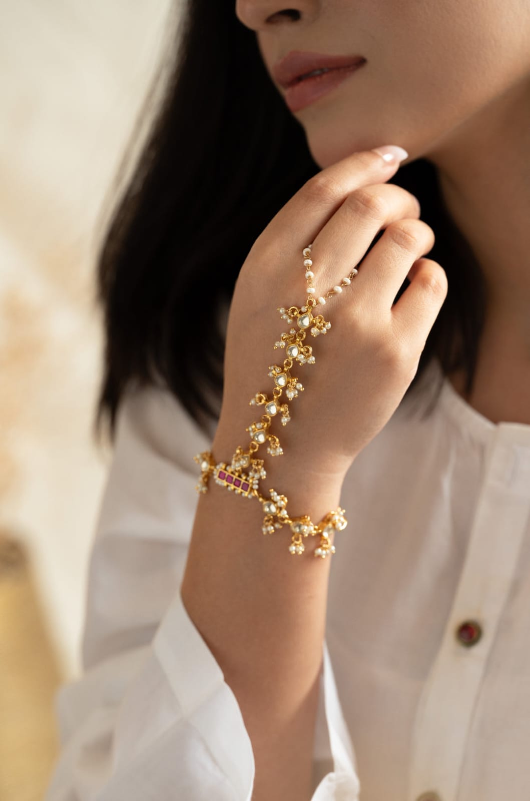 Be the first to review “Gold Plated Kundan And Pearl Embellished Haathphool (Pack Of 2)” Cancel reply