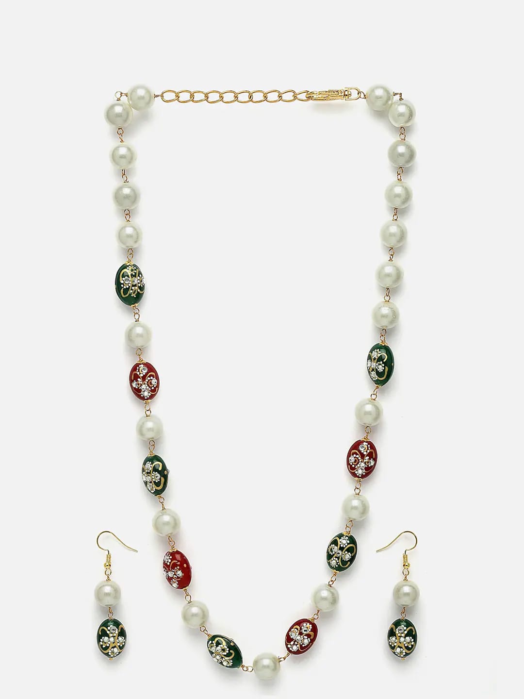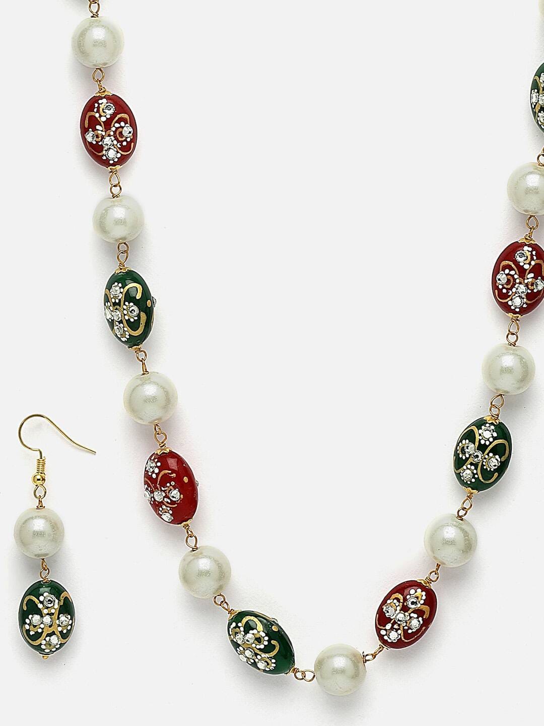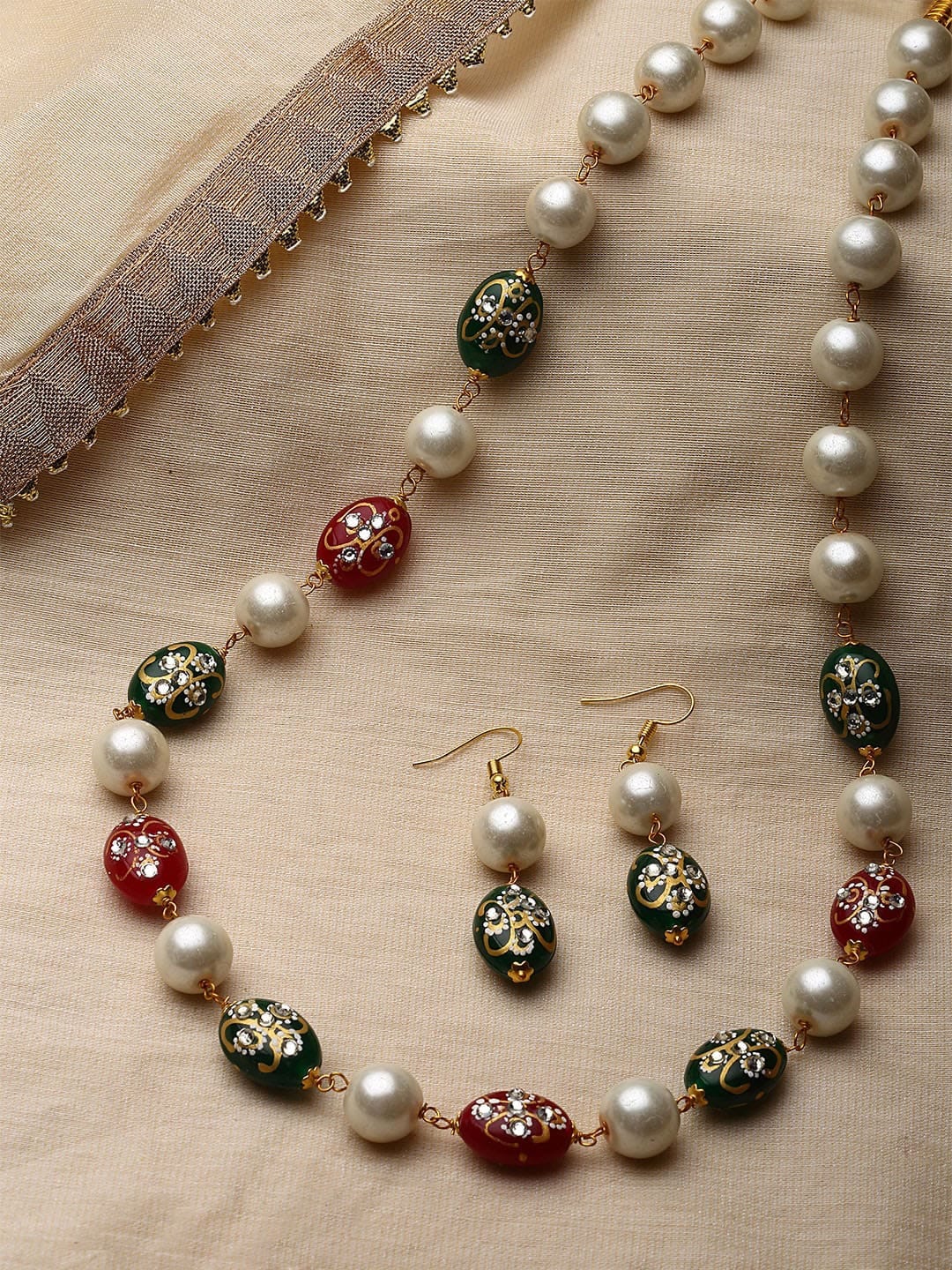 Gold Plated Stones Studded & Beaded Jewellery Set