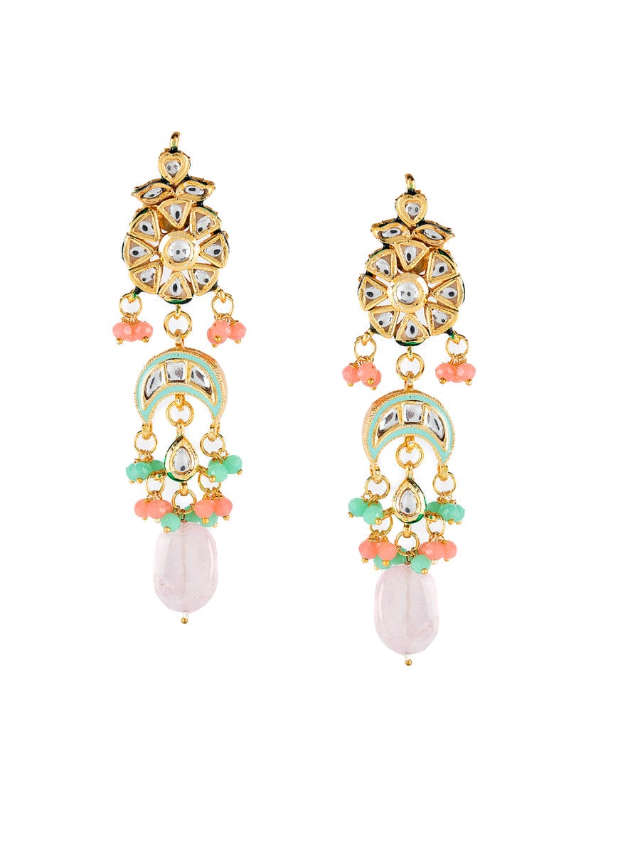 Gold Plated Stones Studded & Beaded Jewellery Set