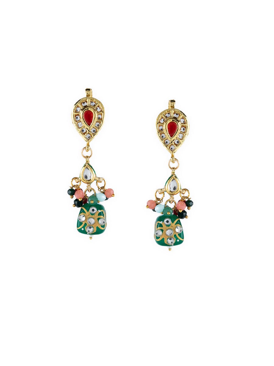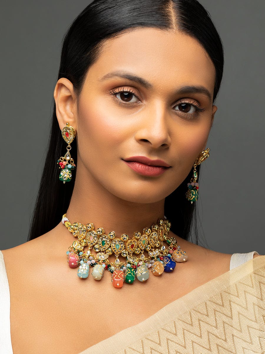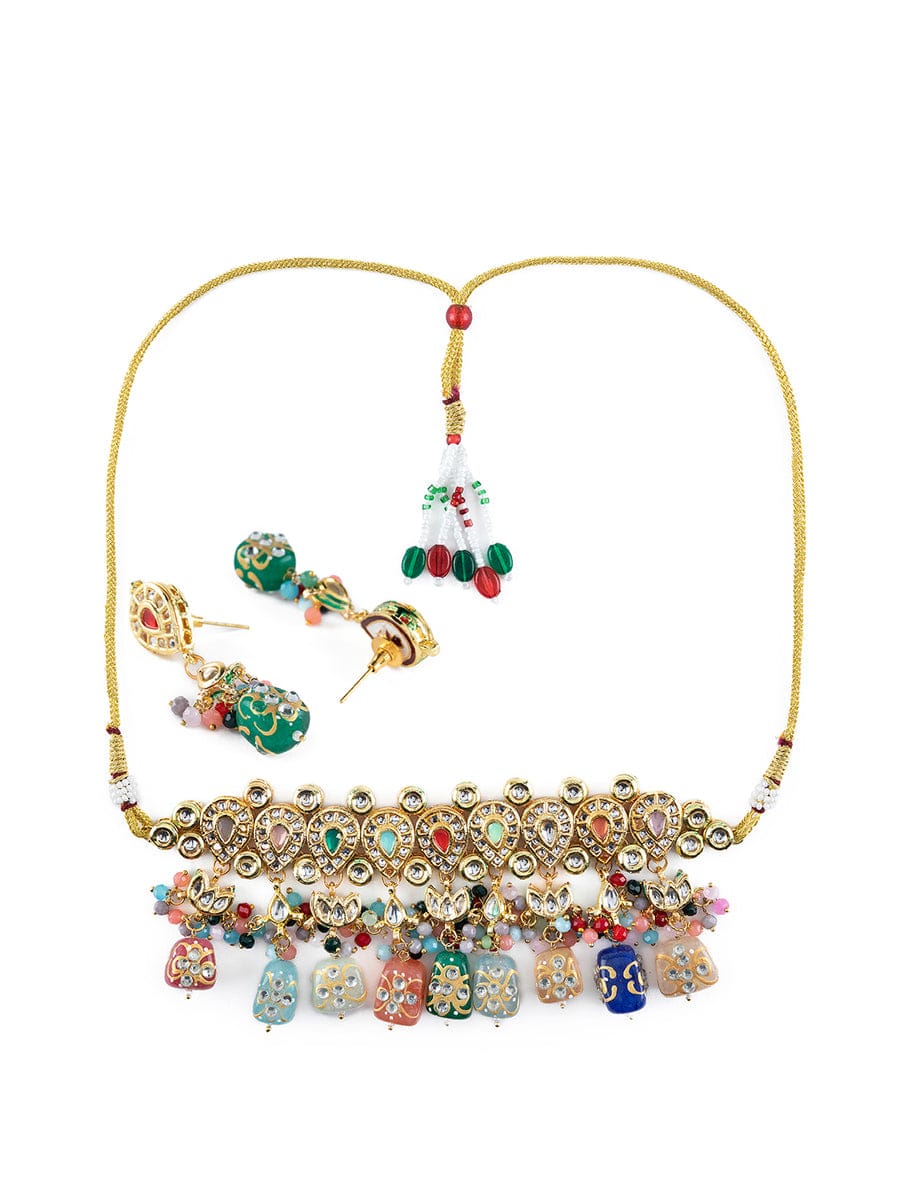 Gold Plated Stones Studded & Beaded Jewellery Set
