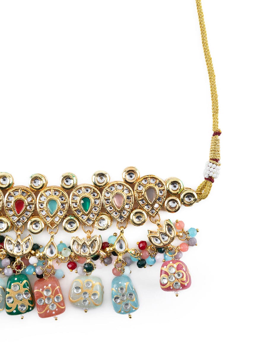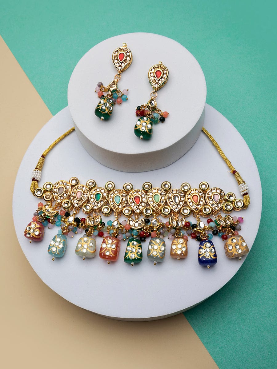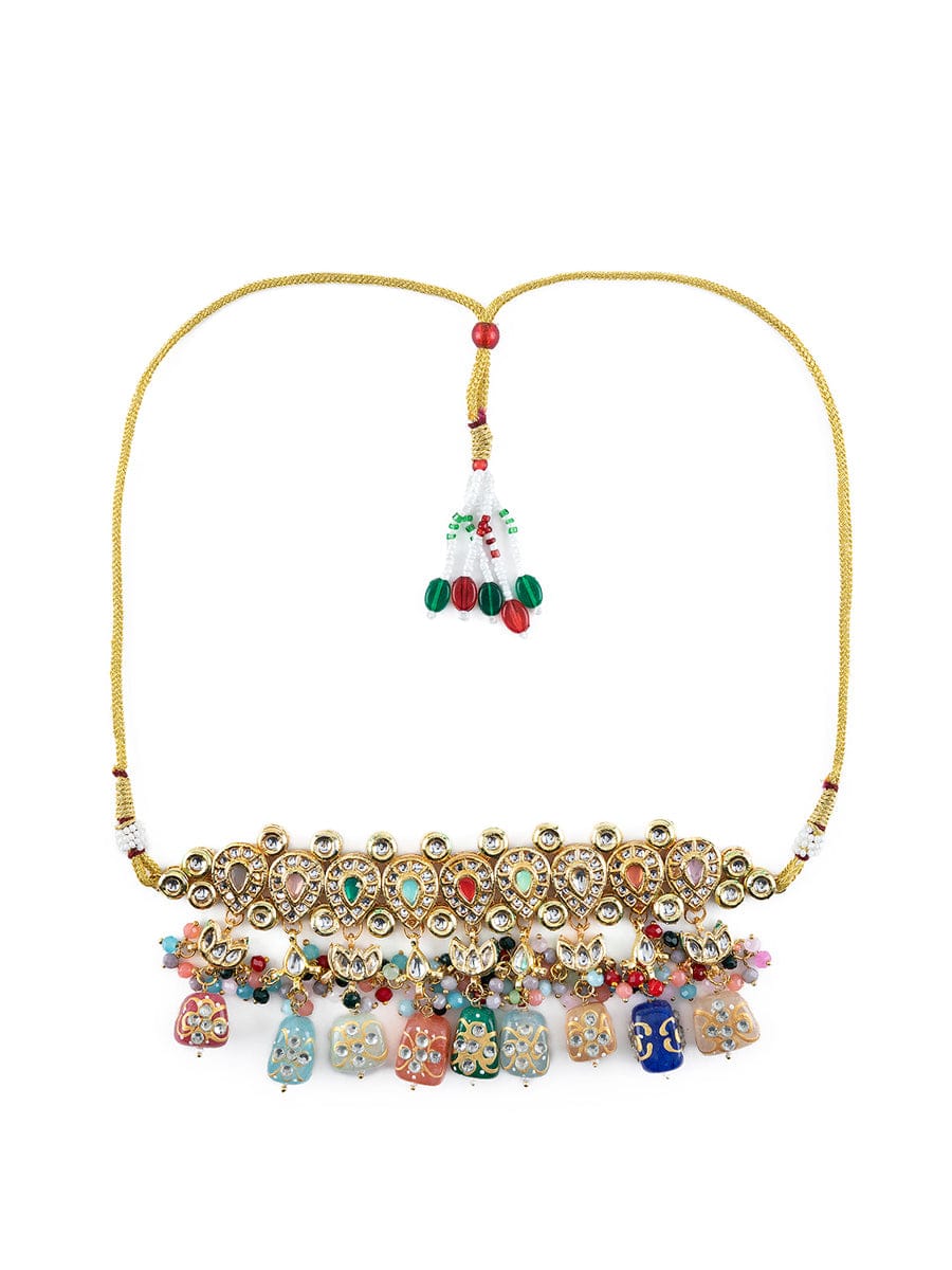 Gold-Plated Kundan-Studded & Beaded Nacklace