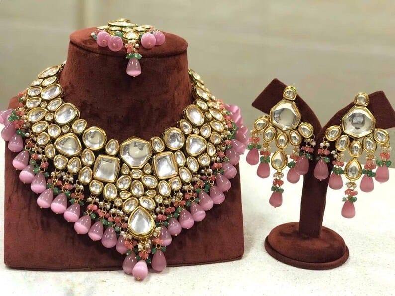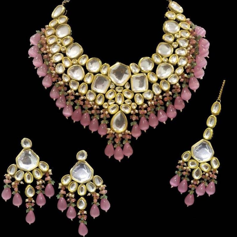 Designer Pearl Beaded Kundan Choker Necklace With Earrings