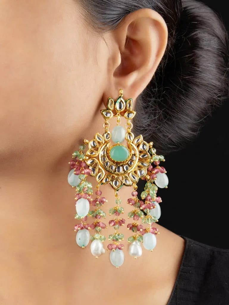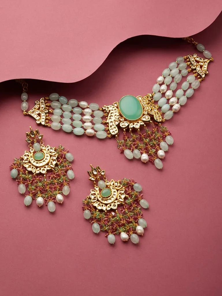 Gold Plated Stones Studded & Beaded Jewellery Set