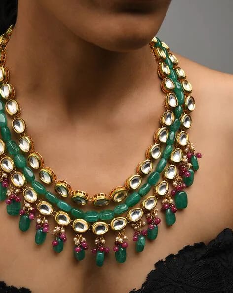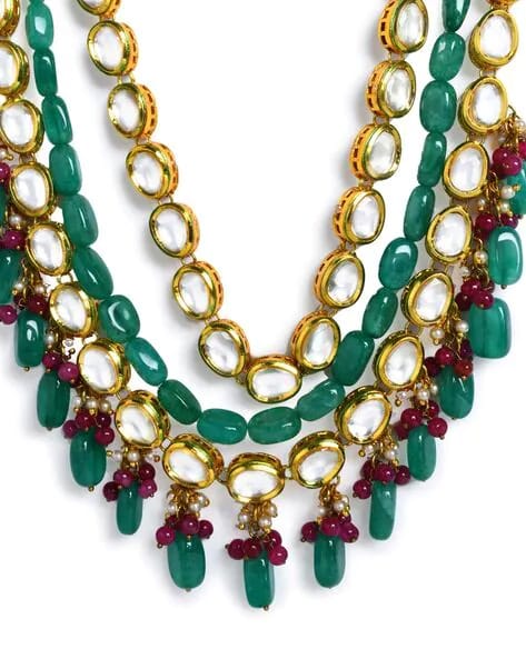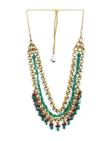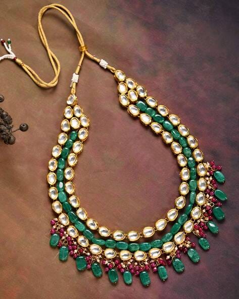 Gold-Plated Kundan-Studded & Beaded Nacklace