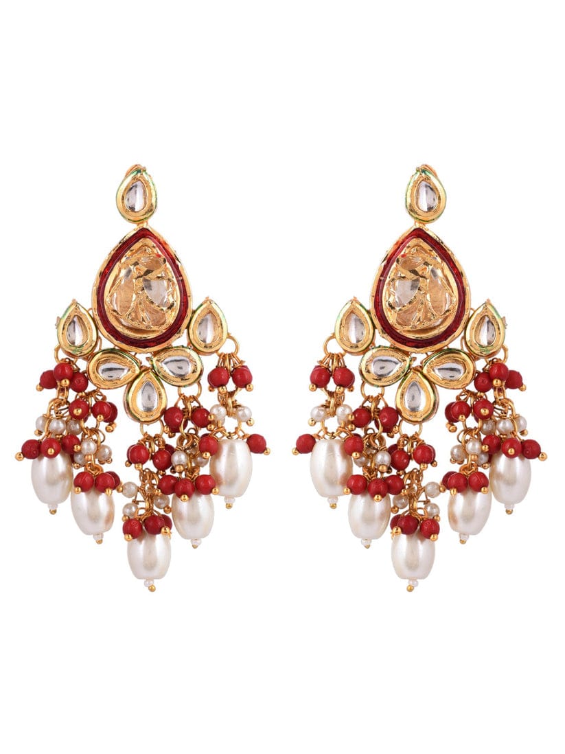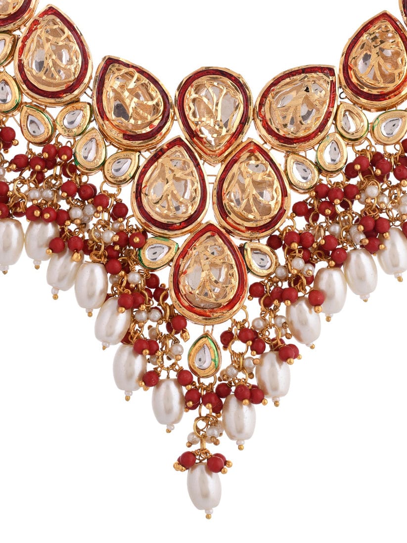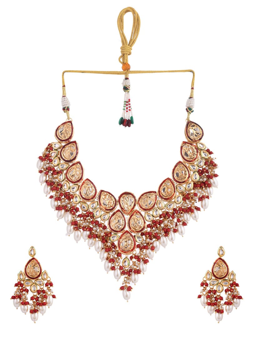 Gold Plated Pearl Studded Choker Necklace & Earrings Set