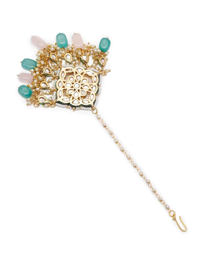 Gold Finish Kundan & Shell Pearl Maang Tikka