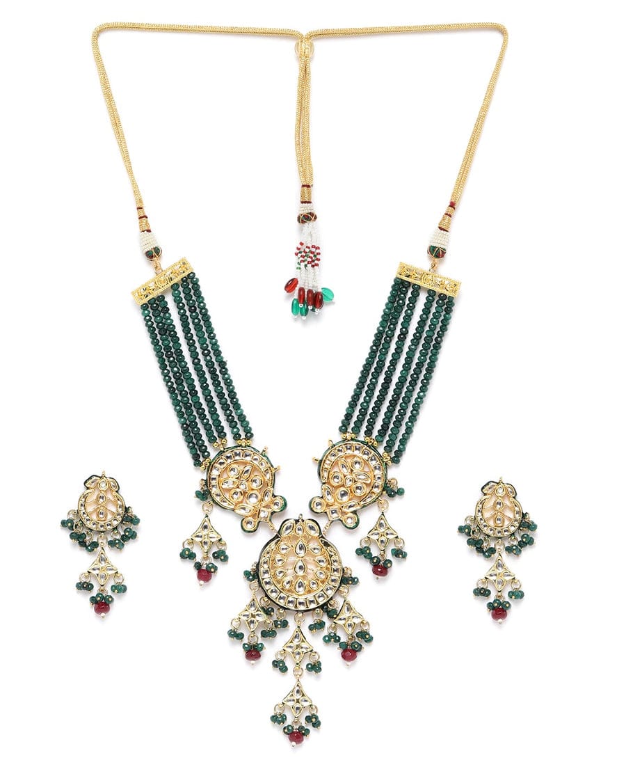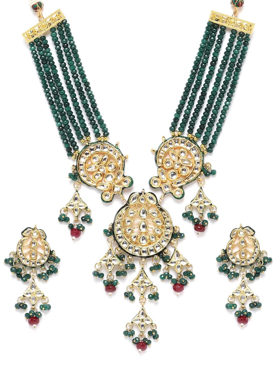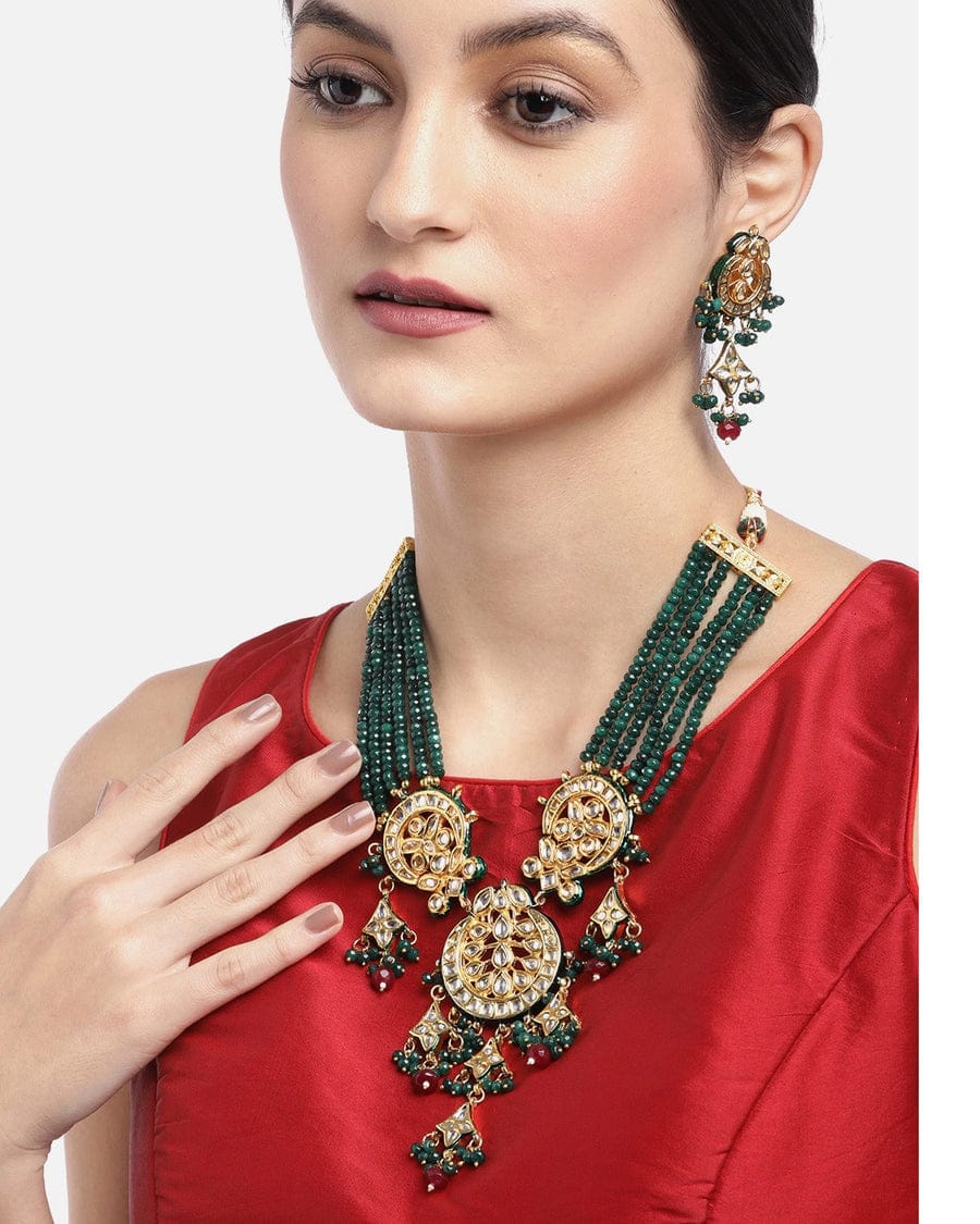 Green Fresh Water Pearls Stones Embellished Multi Layered Necklace