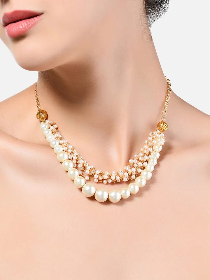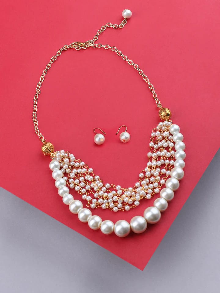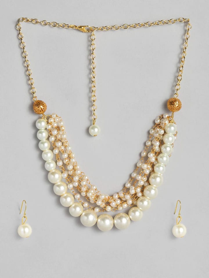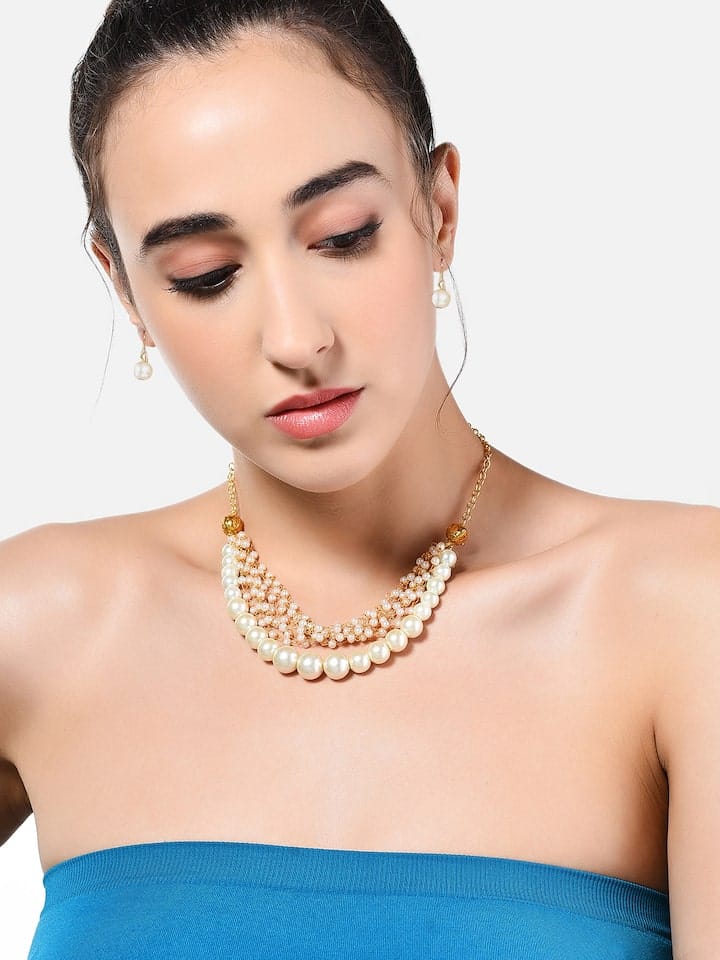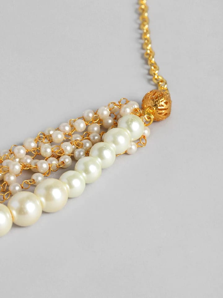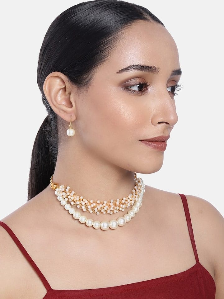 Gold Plated Pearl Studded Choker Necklace & Earrings Set