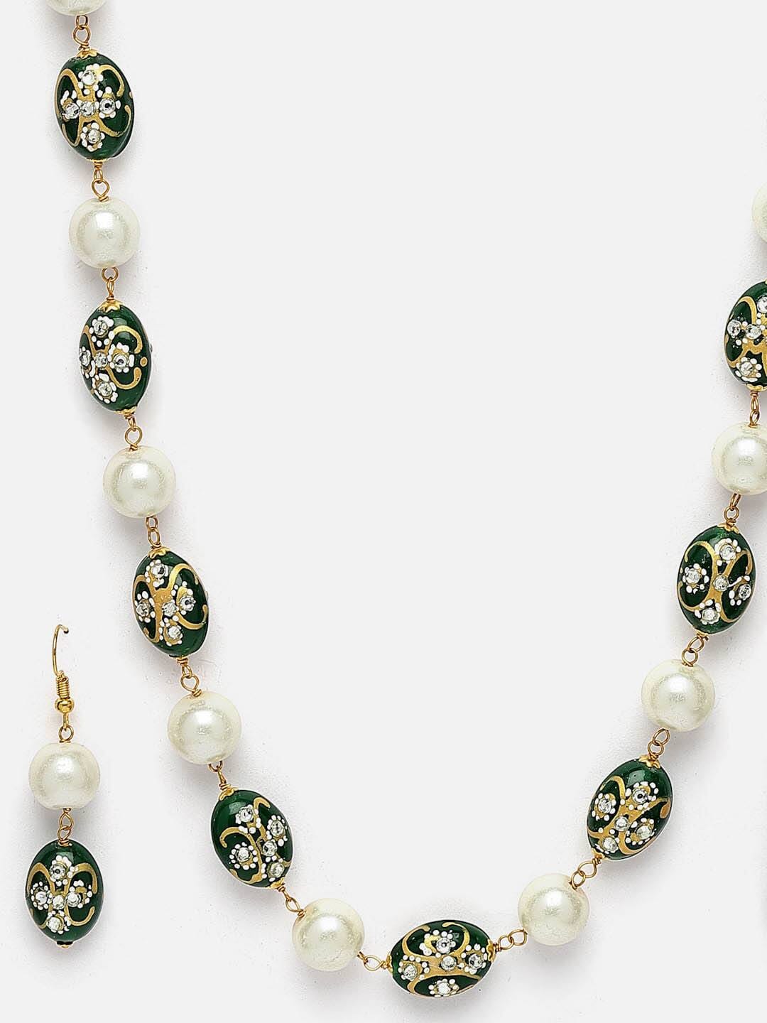 Green Fresh Water Pearls Stones Embellished Multi Layered Necklace