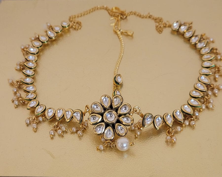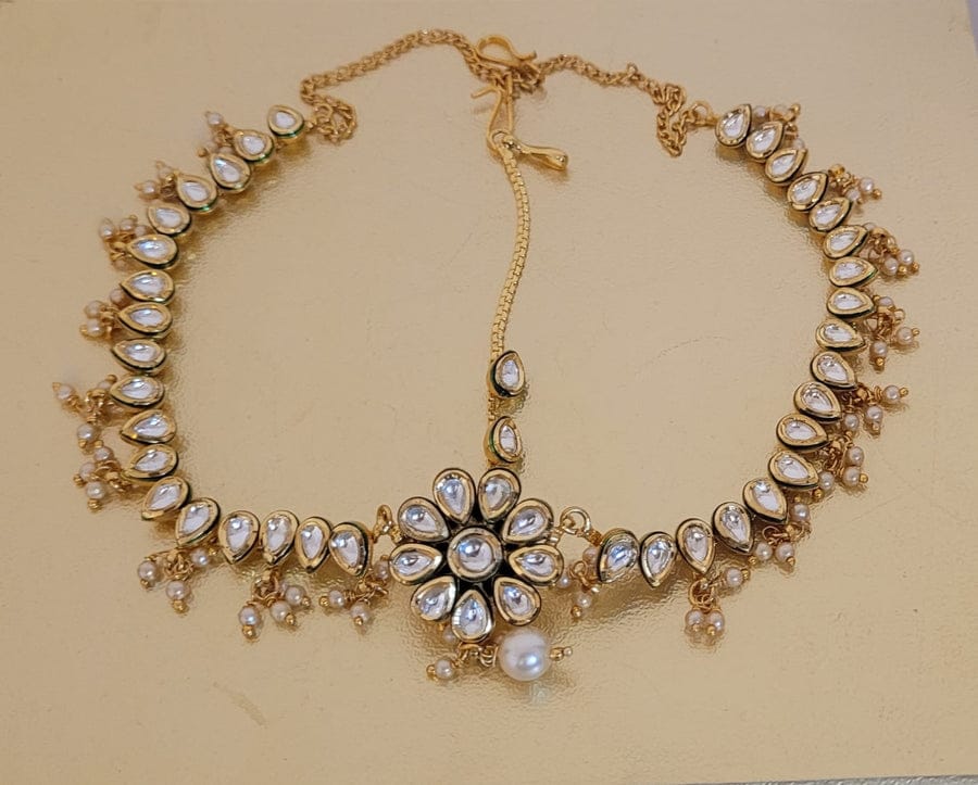 Be the first to review “Exclusive Studded Gold Plated Headband With Enamel Work Traditional Bridal Matha Patti”
