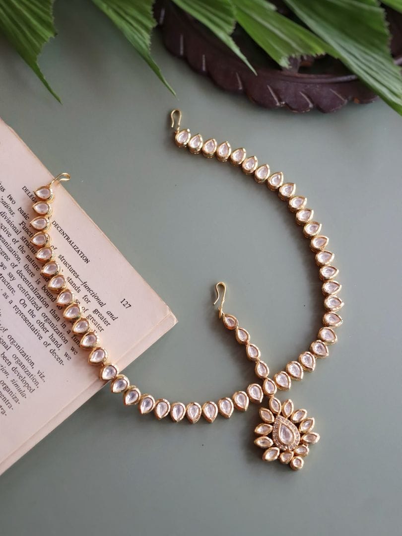 Be the first to review “Exclusive Studded Gold Plated Headband With Enamel Work Traditional Bridal Matha Patti”