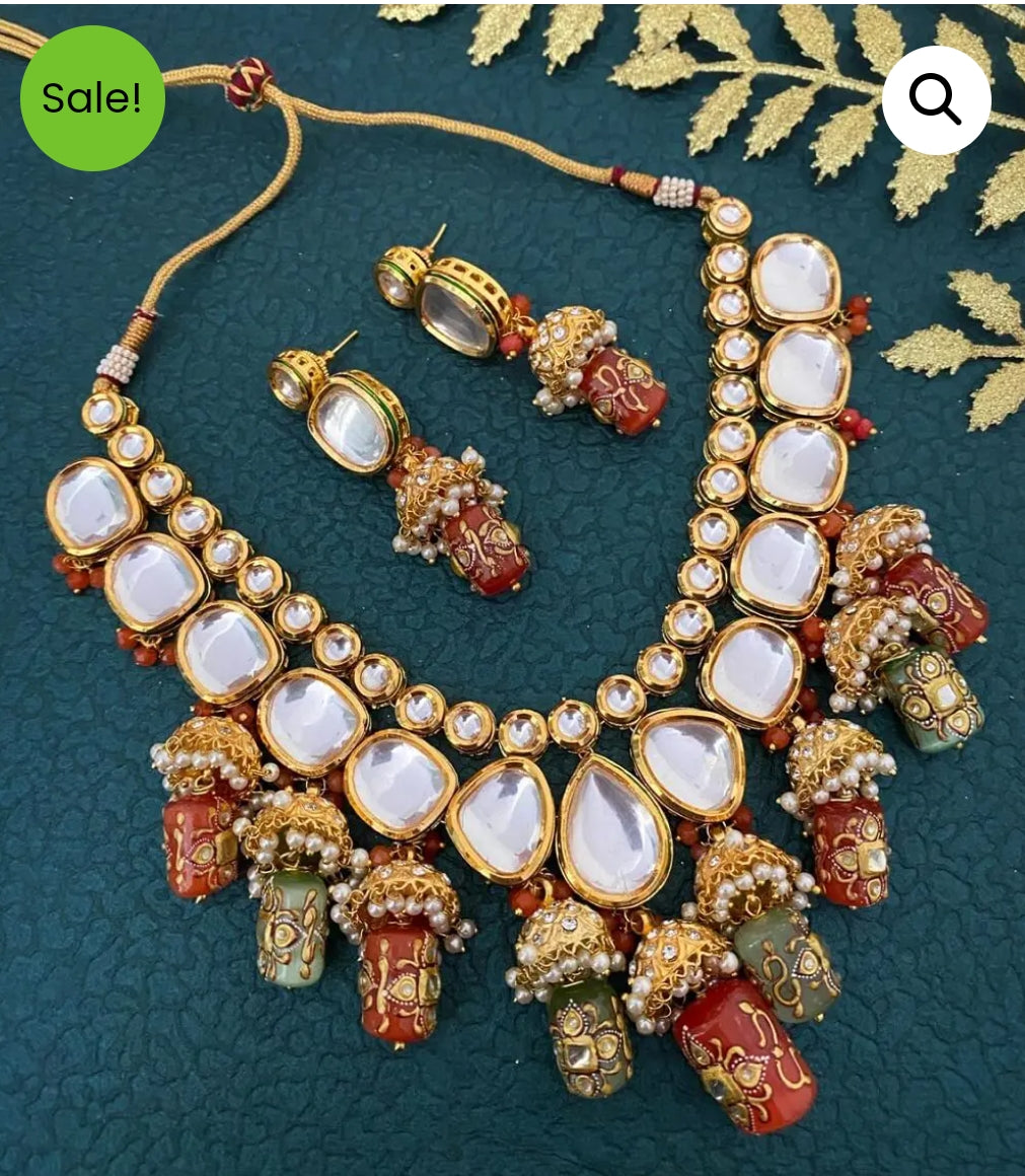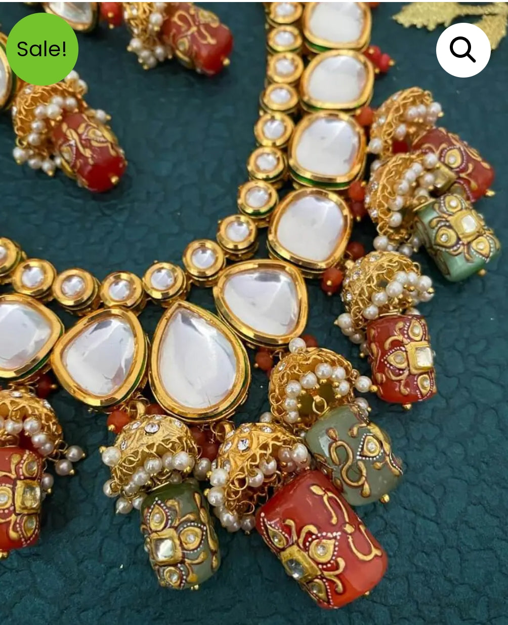 Heavy Meenakari Kundan With Emarald Green Drop Stone Necklace