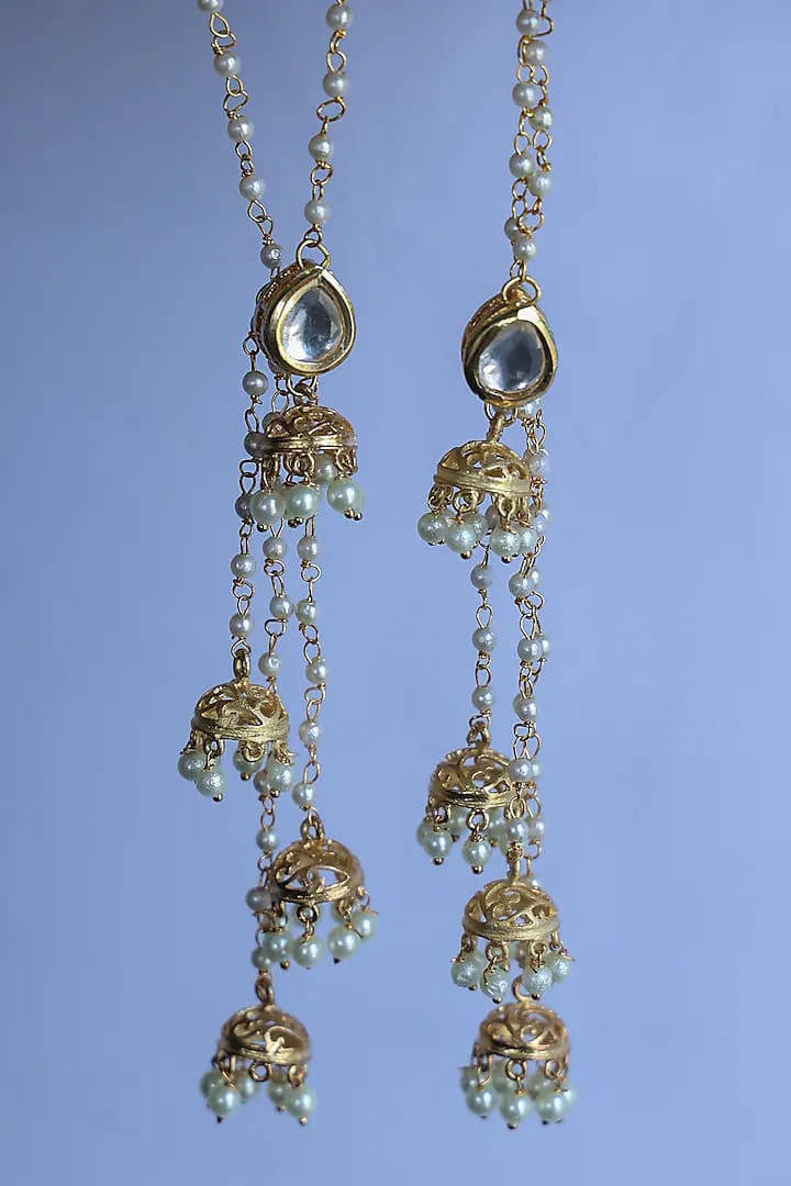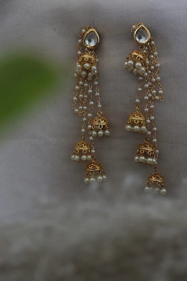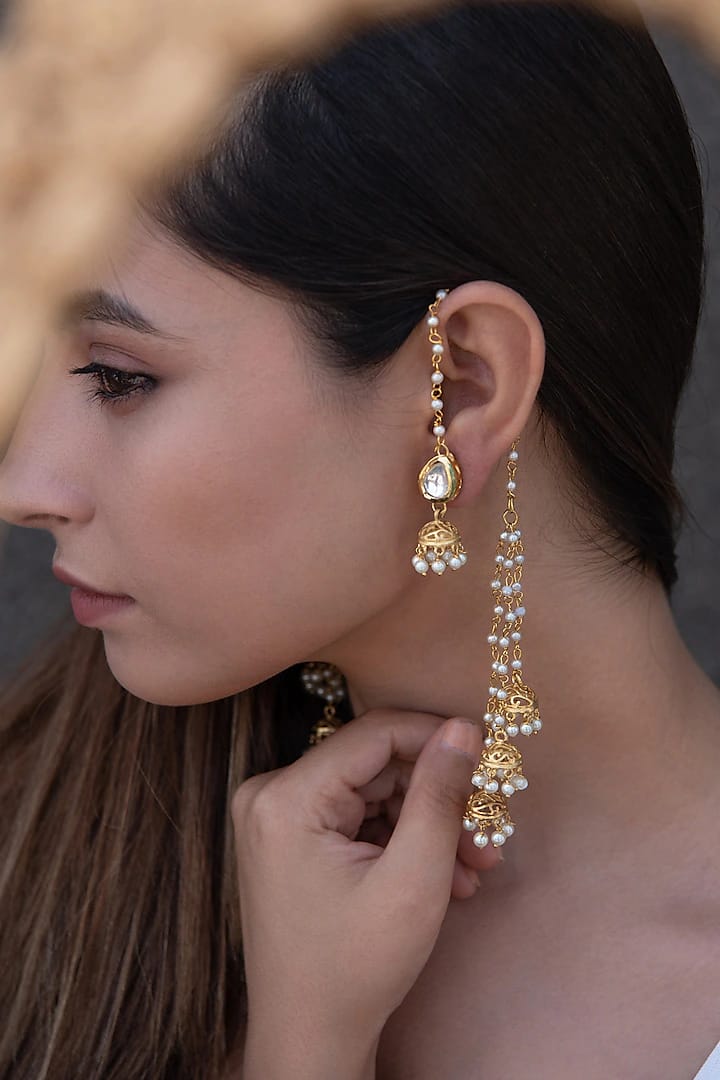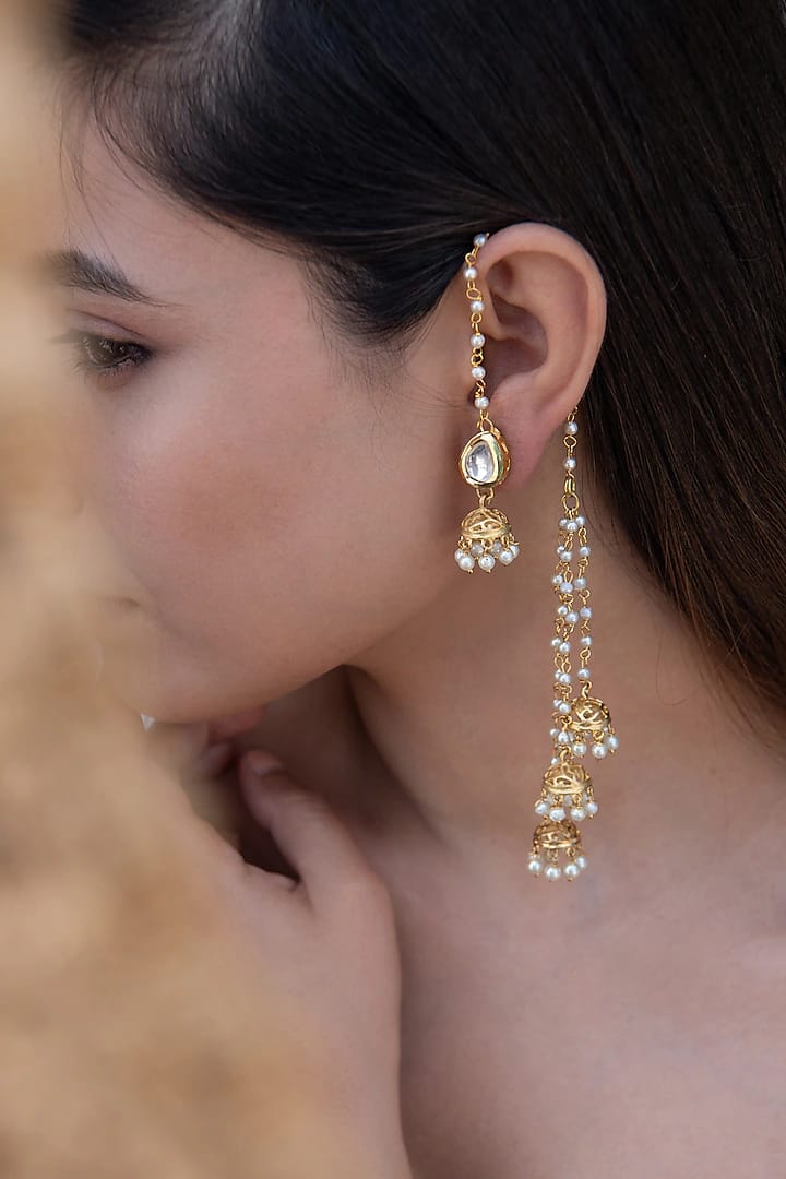 Gold Plated Kundan Polki & Pearl Jhumka Earrings