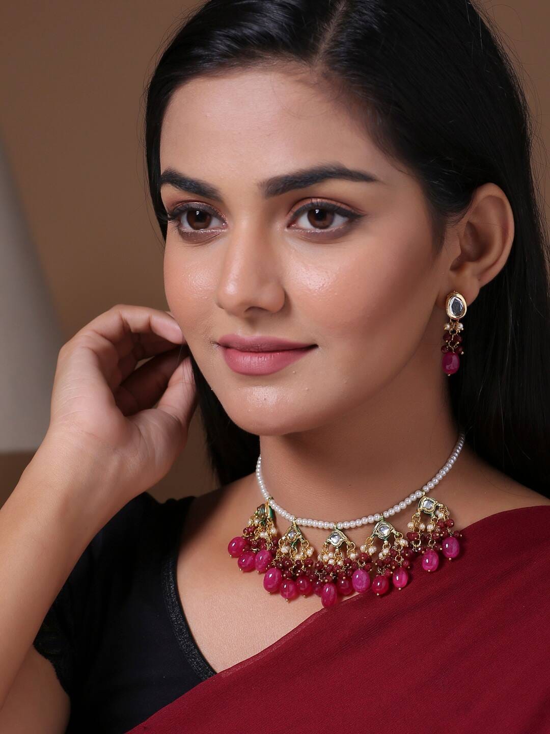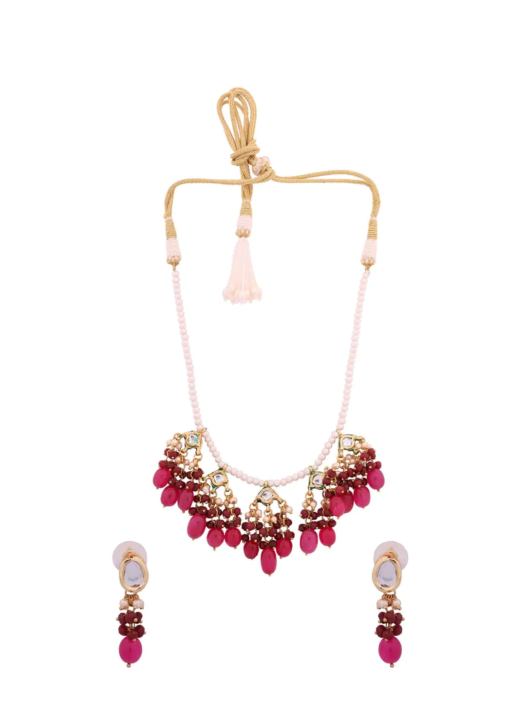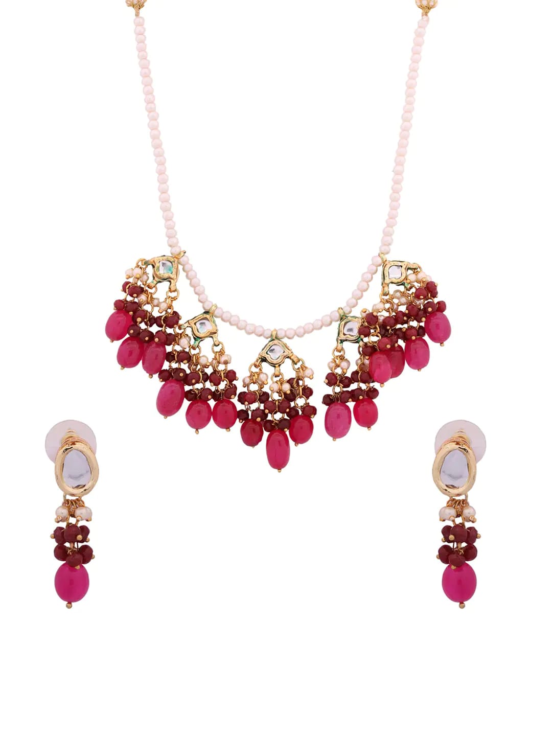 Gold Plated Stones Studded & Beaded Jewellery Set