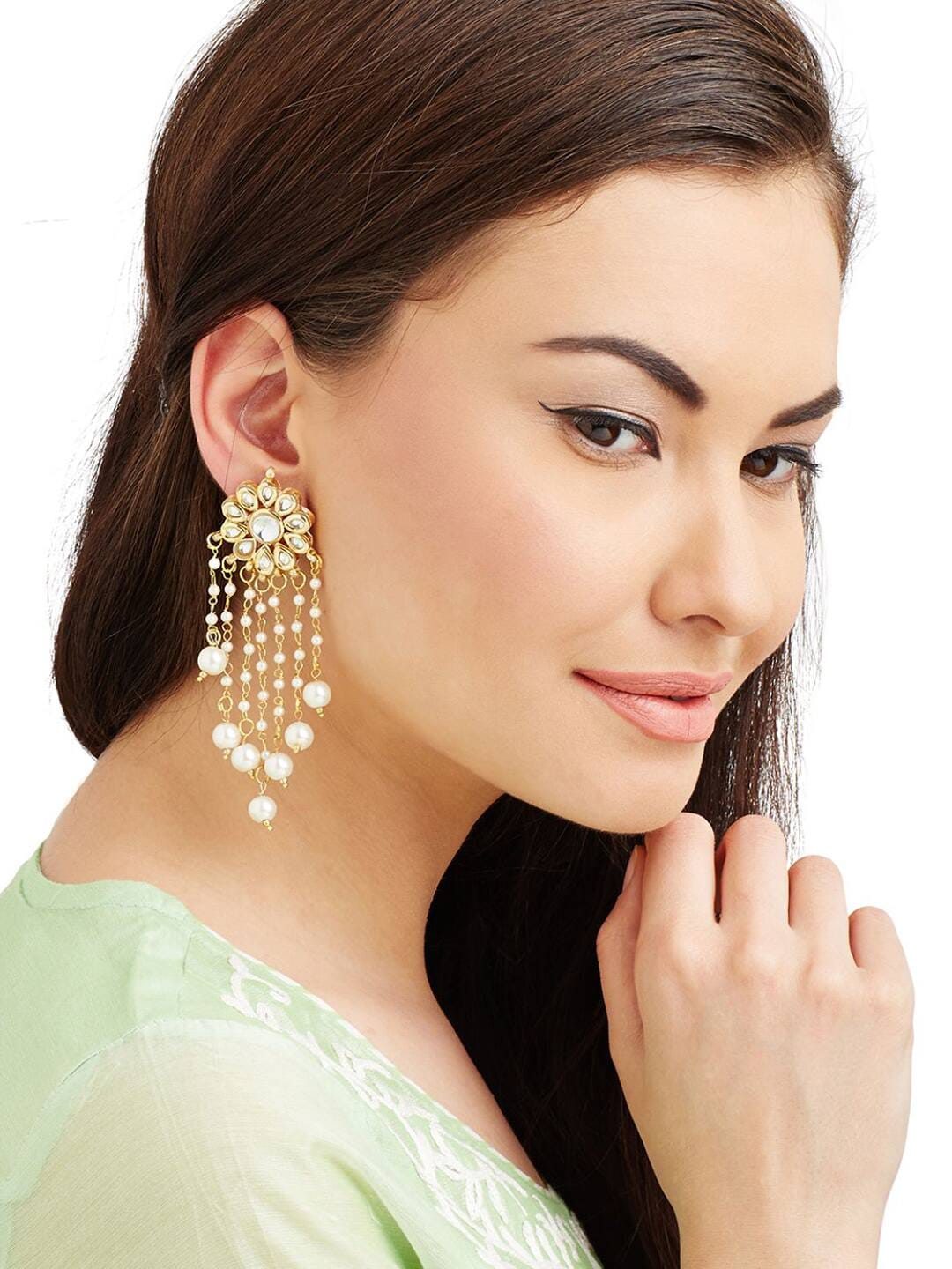 Gold Plated Kundan Studded Victorian Earrings