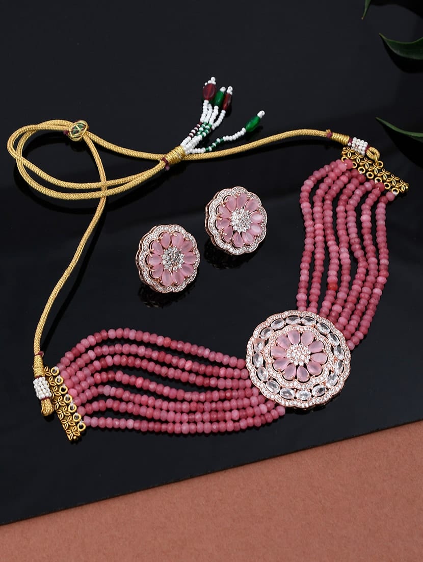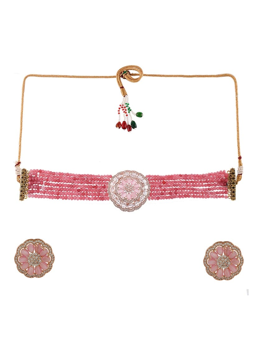 Designer Pearl Beaded Kundan Choker Necklace With Earrings