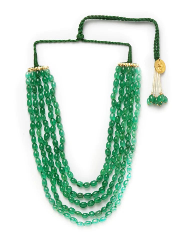 Green Fresh Water Pearls Stones Embellished Multi Layered Necklace