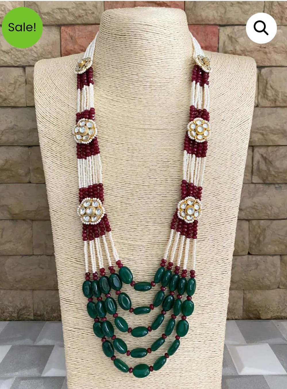 Heavy Meenakari Kundan With Emarald Green Drop Stone Necklace