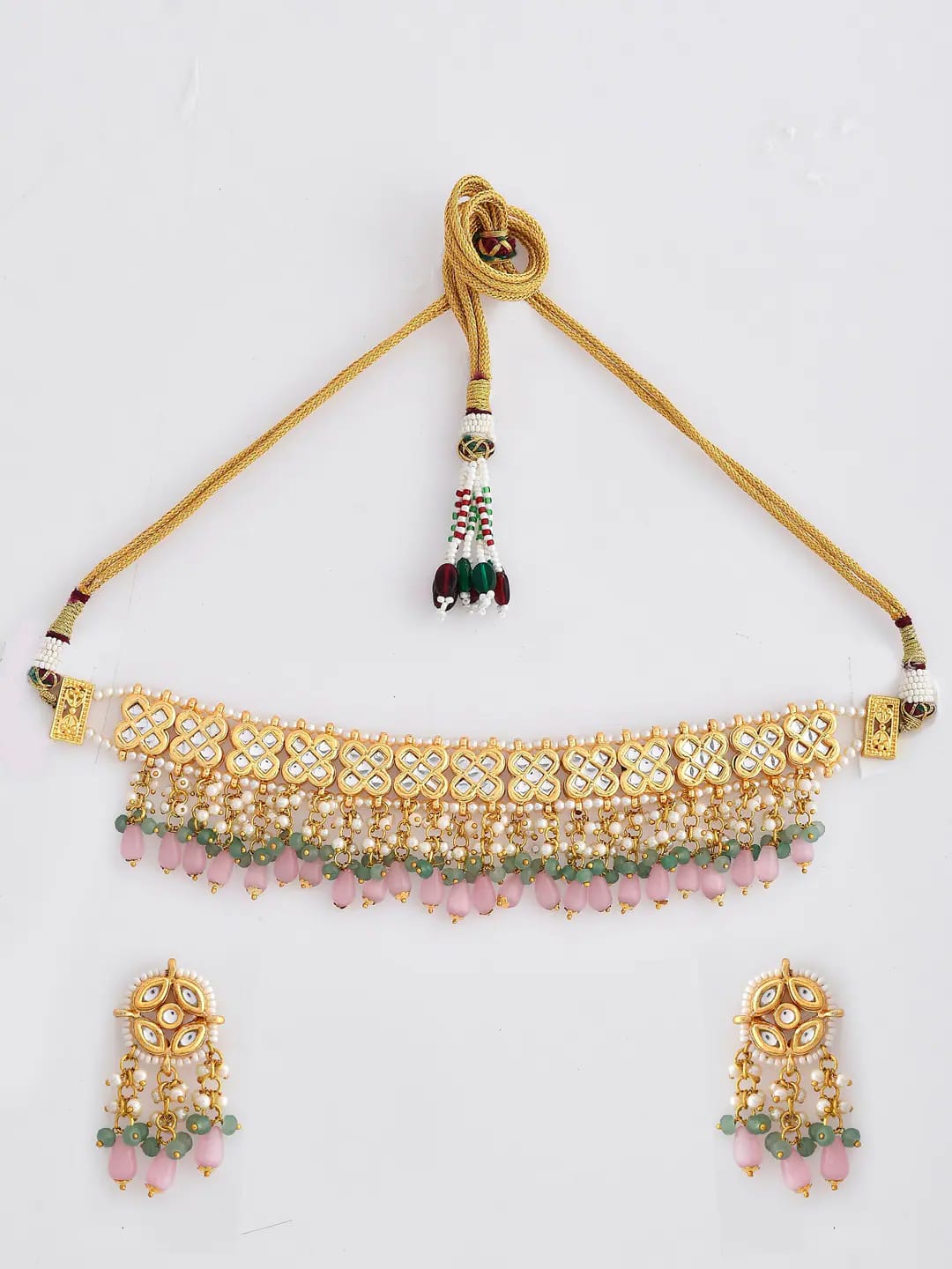 Gold Plated Beads Victorian Polish Necklace with Earrings