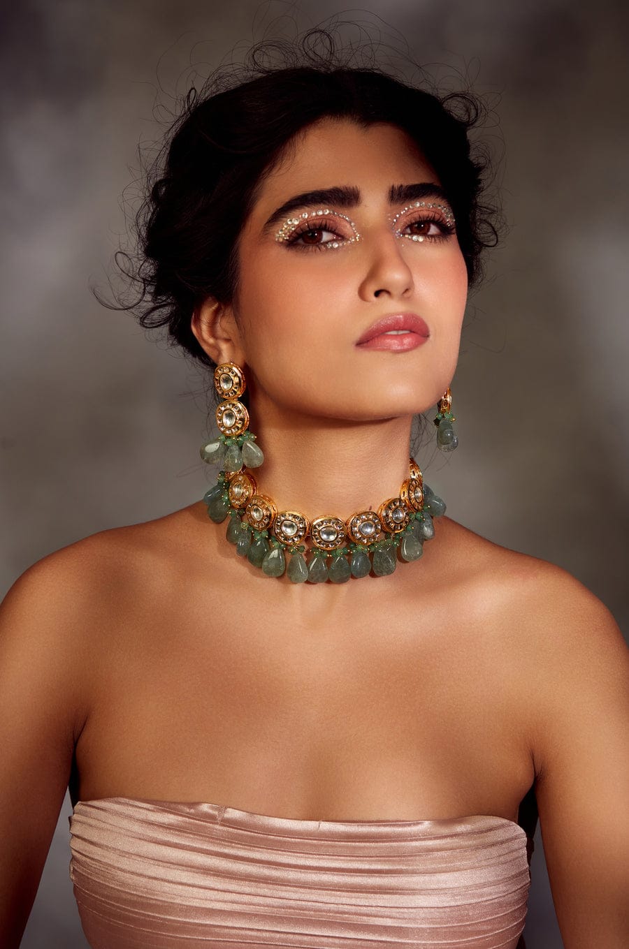 Victorian Uncut Polki Faux Diamond Necklace & Earring Set