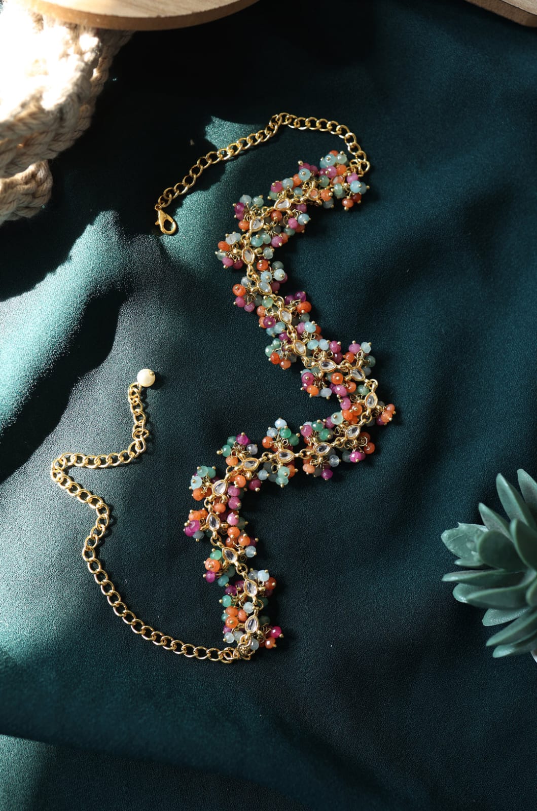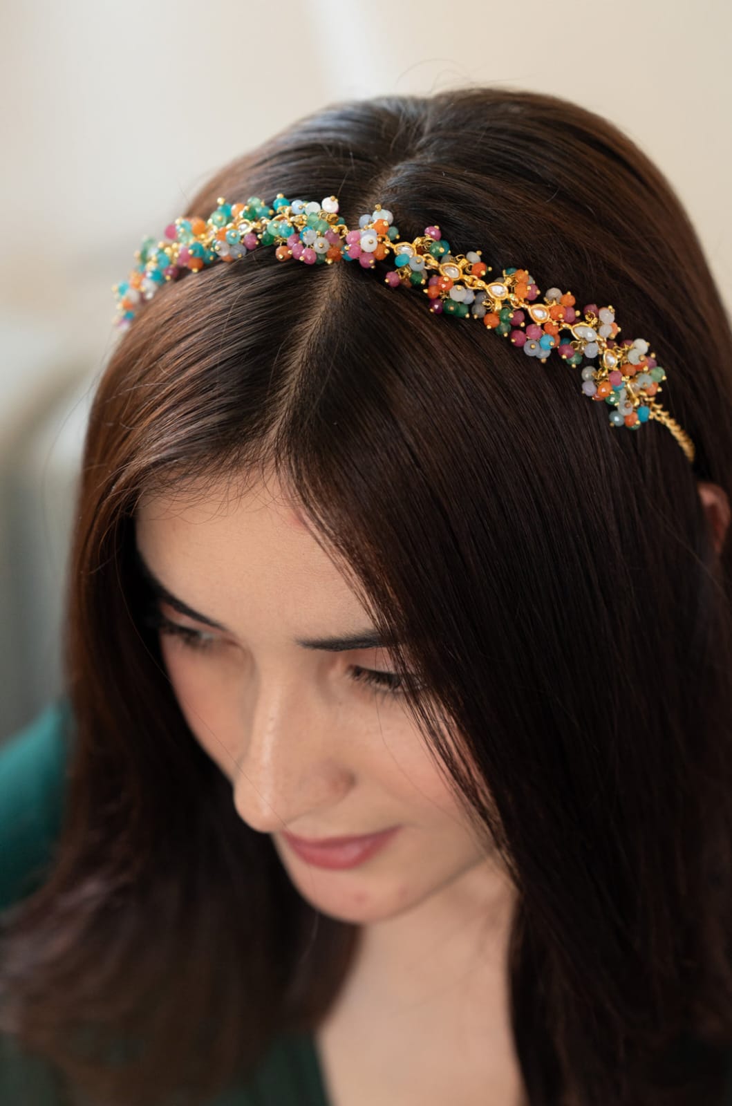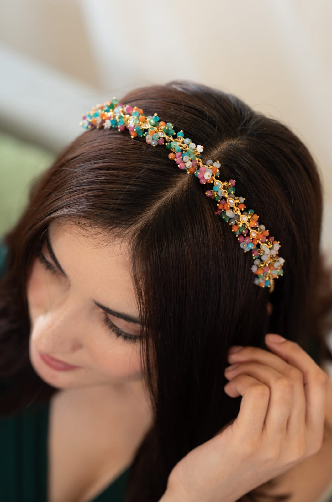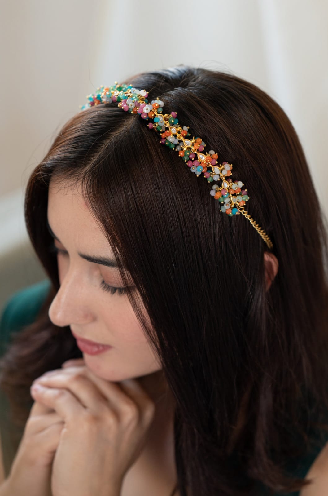 Gold Plated Multi-Colored Onyx & Kundan Headband