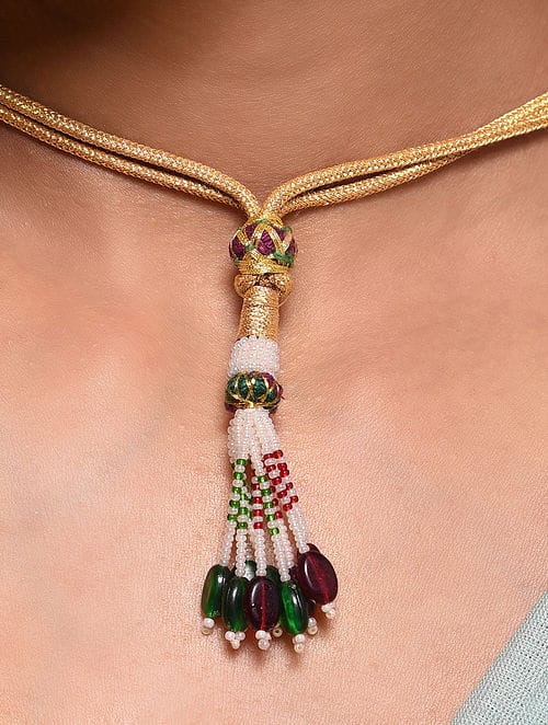Gold-Plated Kundan-Studded & Beaded Nacklace