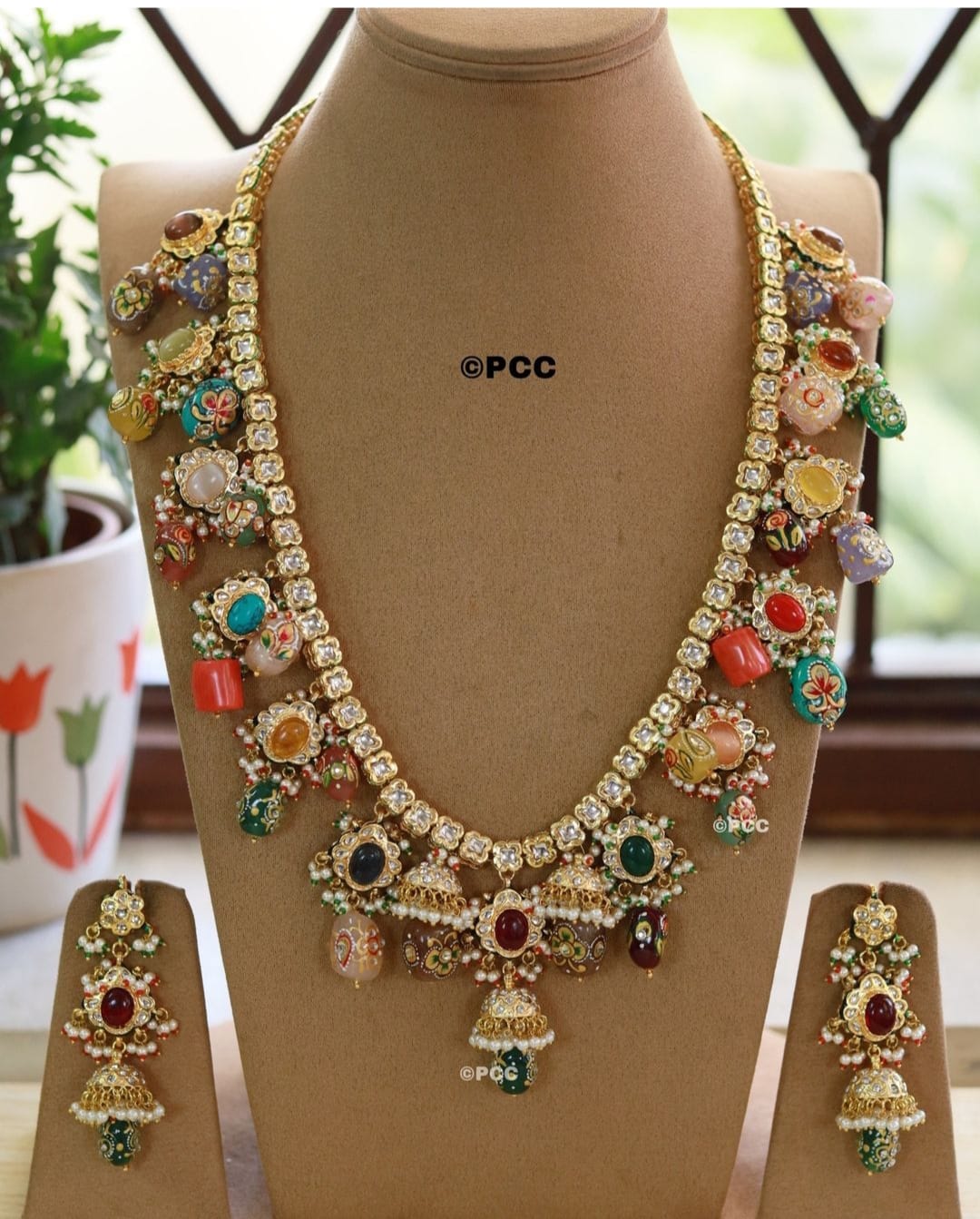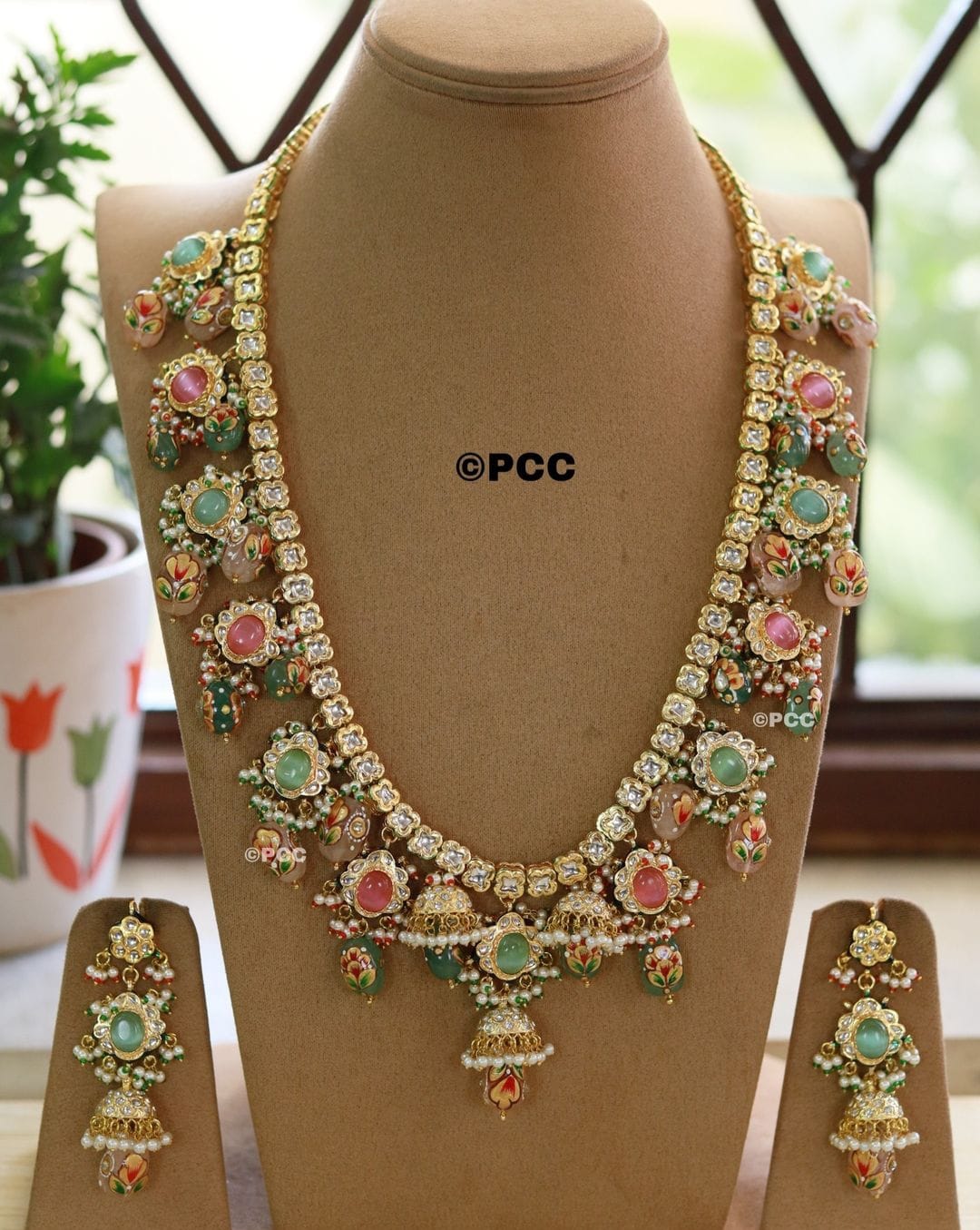 Victorian Uncut Polki Faux Diamond Necklace & Earring Set
