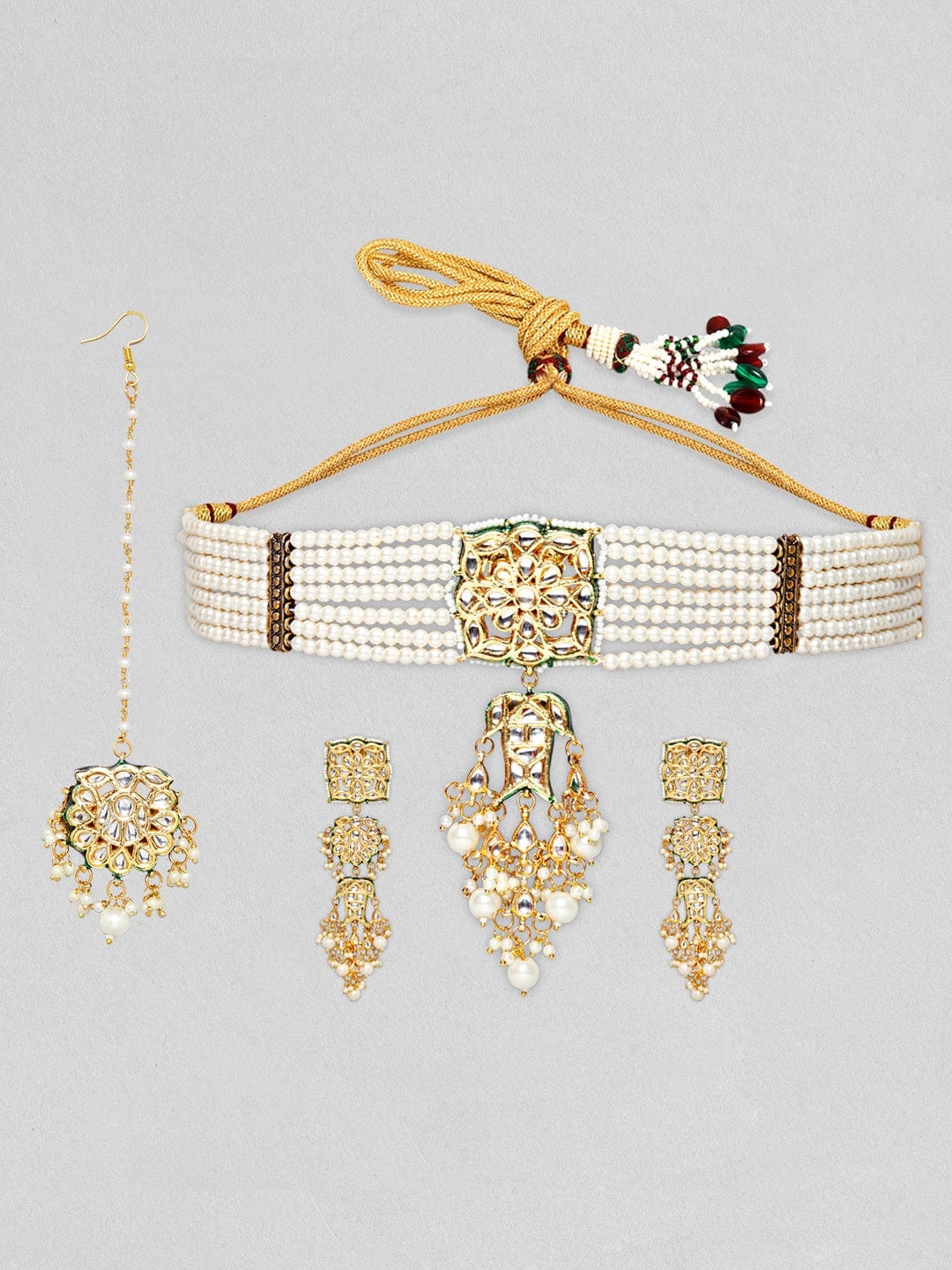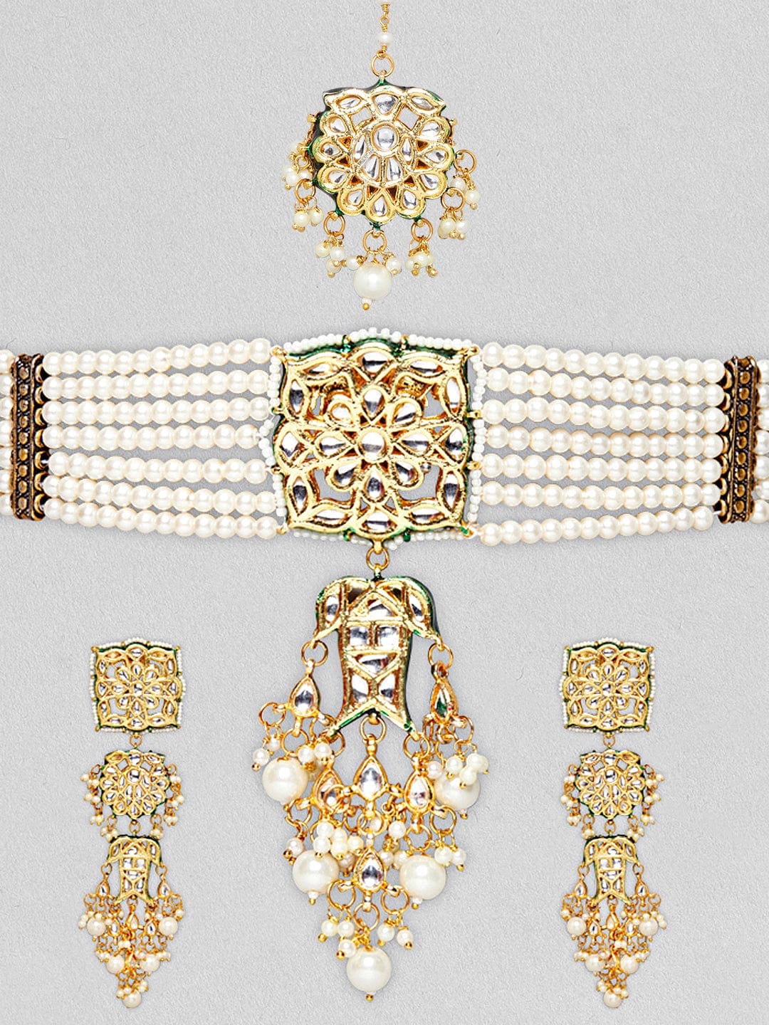Designer Pearl Beaded Kundan Choker Necklace With Earrings