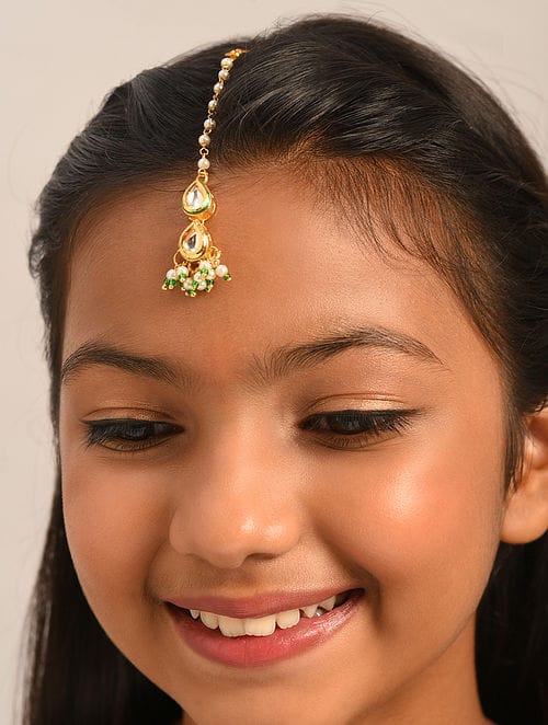 Gold-Plated Pearl & Kundan Studded Mangtika