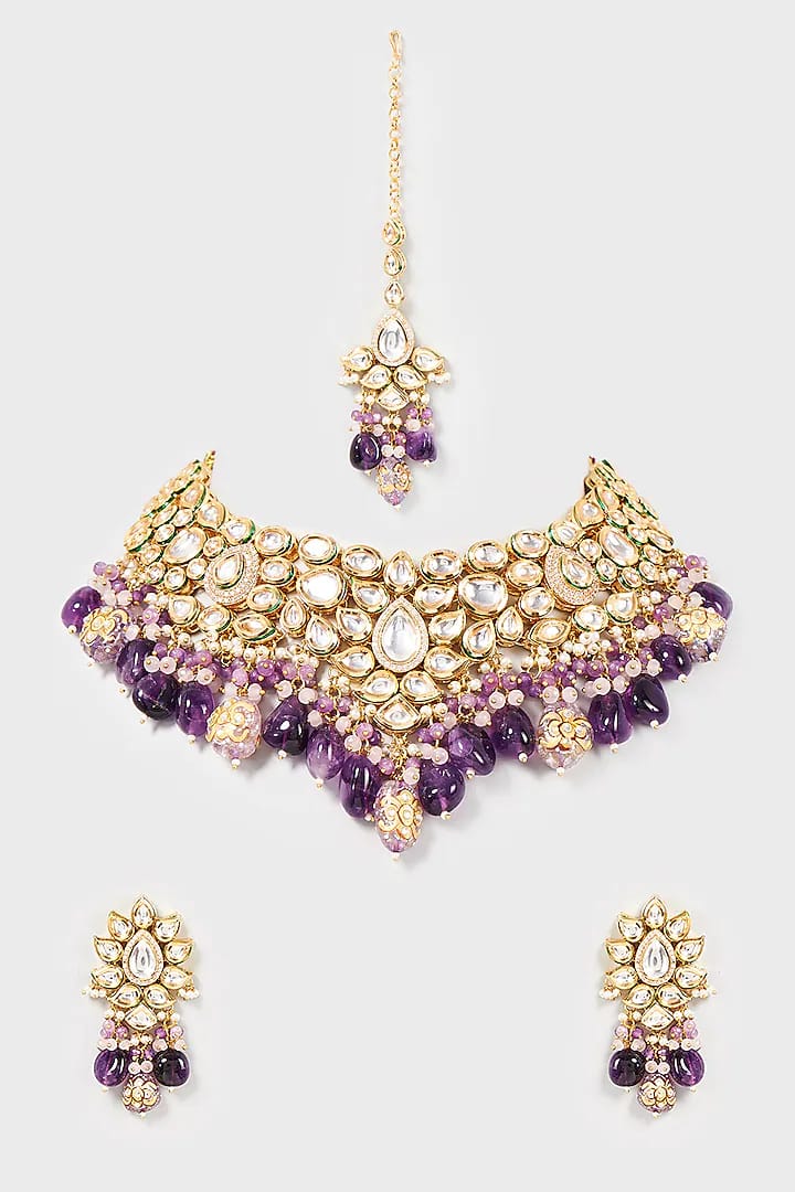 Gold-Plated Kundan-Studded & Beaded Nacklace