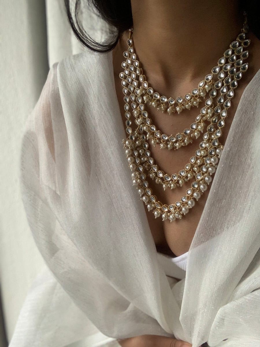 Victorian Uncut Polki Faux Diamond Necklace & Earring Set
