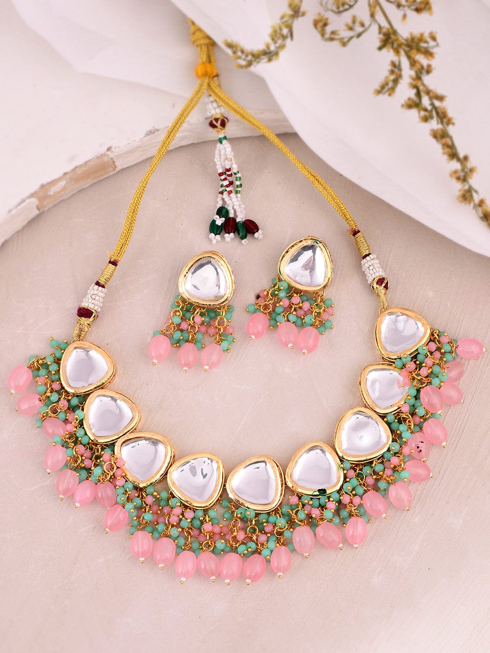 Be the first to review “Gold plated pink beads kundan jewellery set”