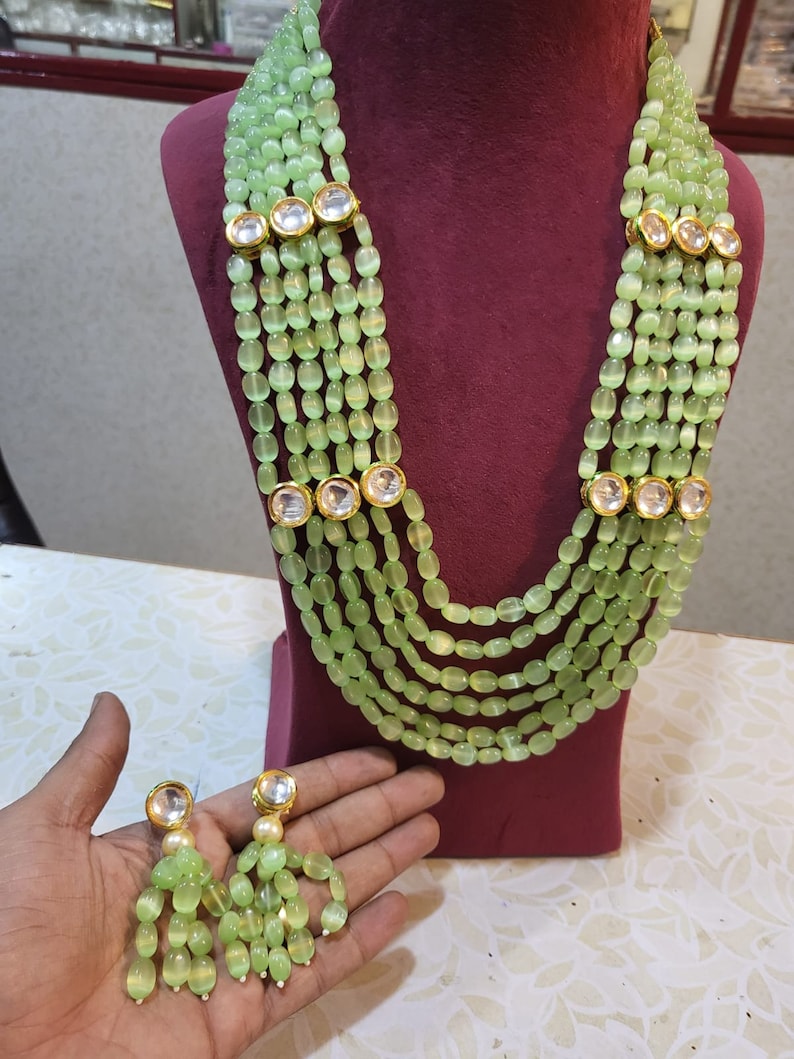 Gold-Plated Kundan-Studded & Beaded Nacklace