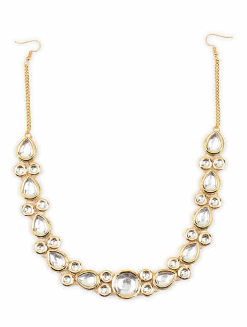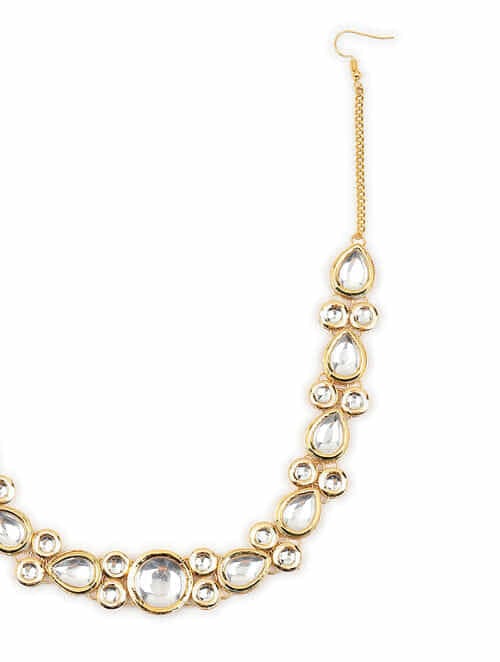 Gold Plated Jadau Kundan Polki & Green Stone Mathapatti